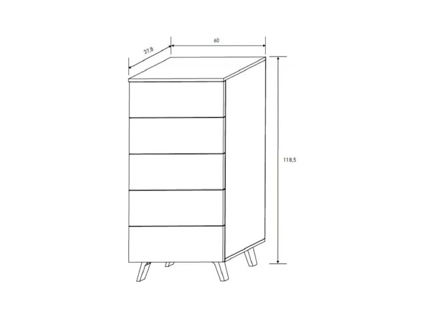 Sinfonier Soto 5 cajones roble/blanco 118,5x60x37,8 cm