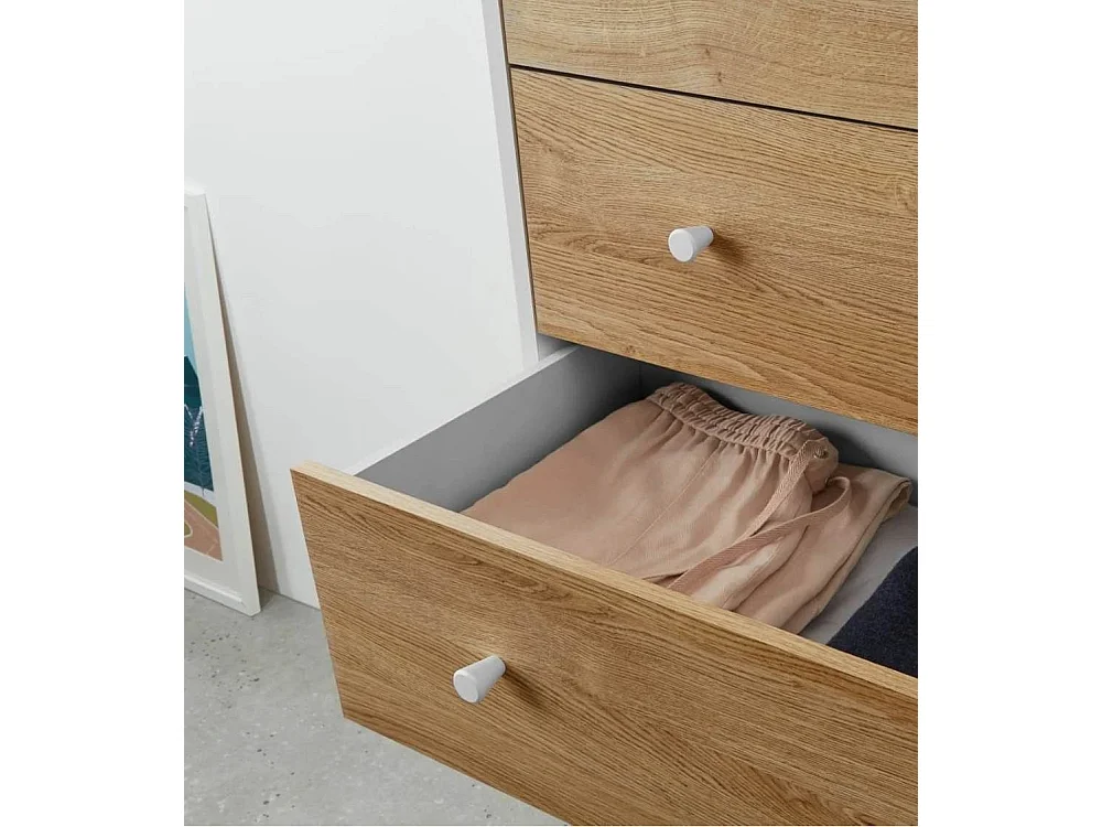 Sinfornier de 6 cajones de 135x80x45 cm de diseño escandinavo color blanco y roble Leah