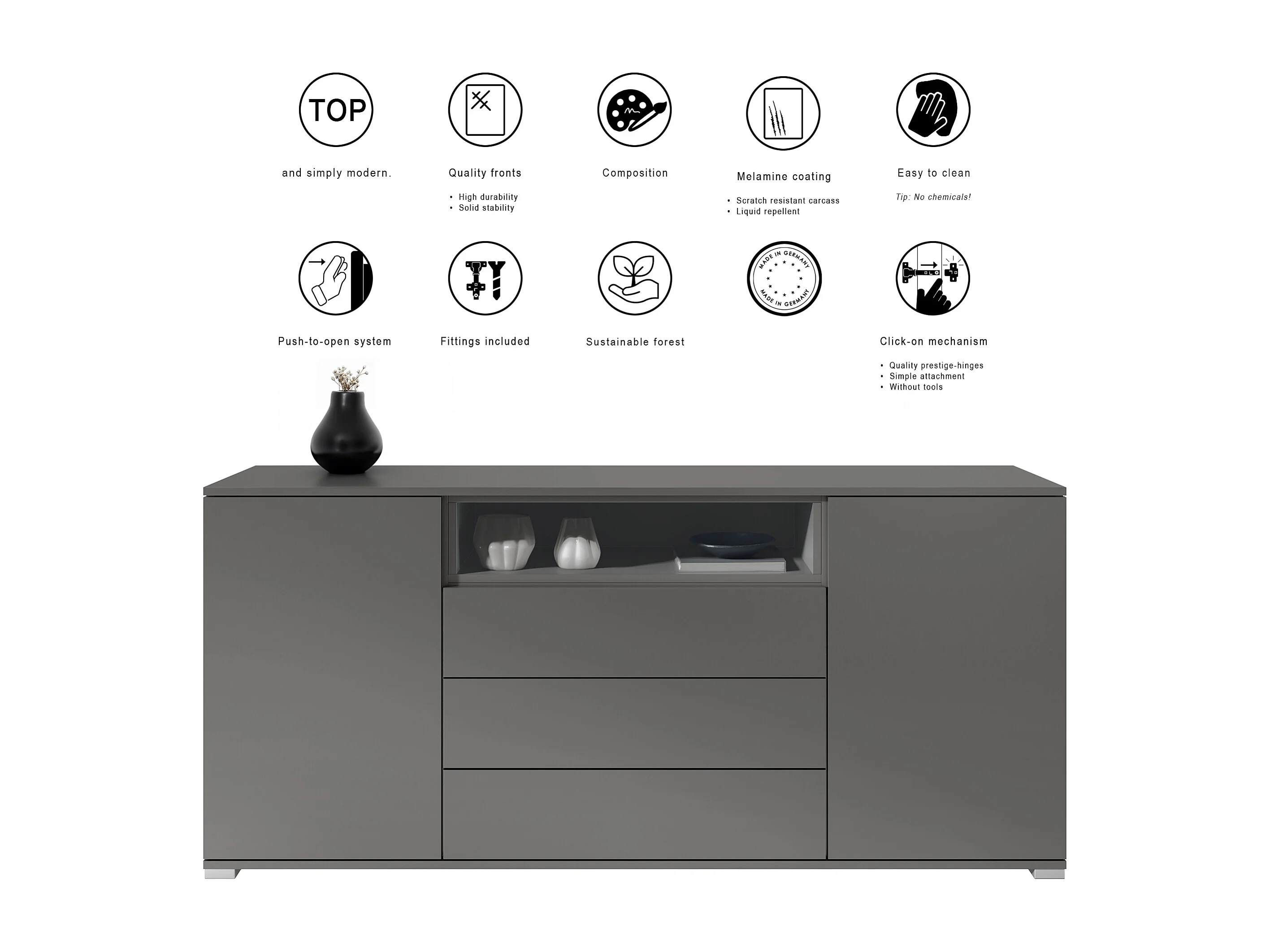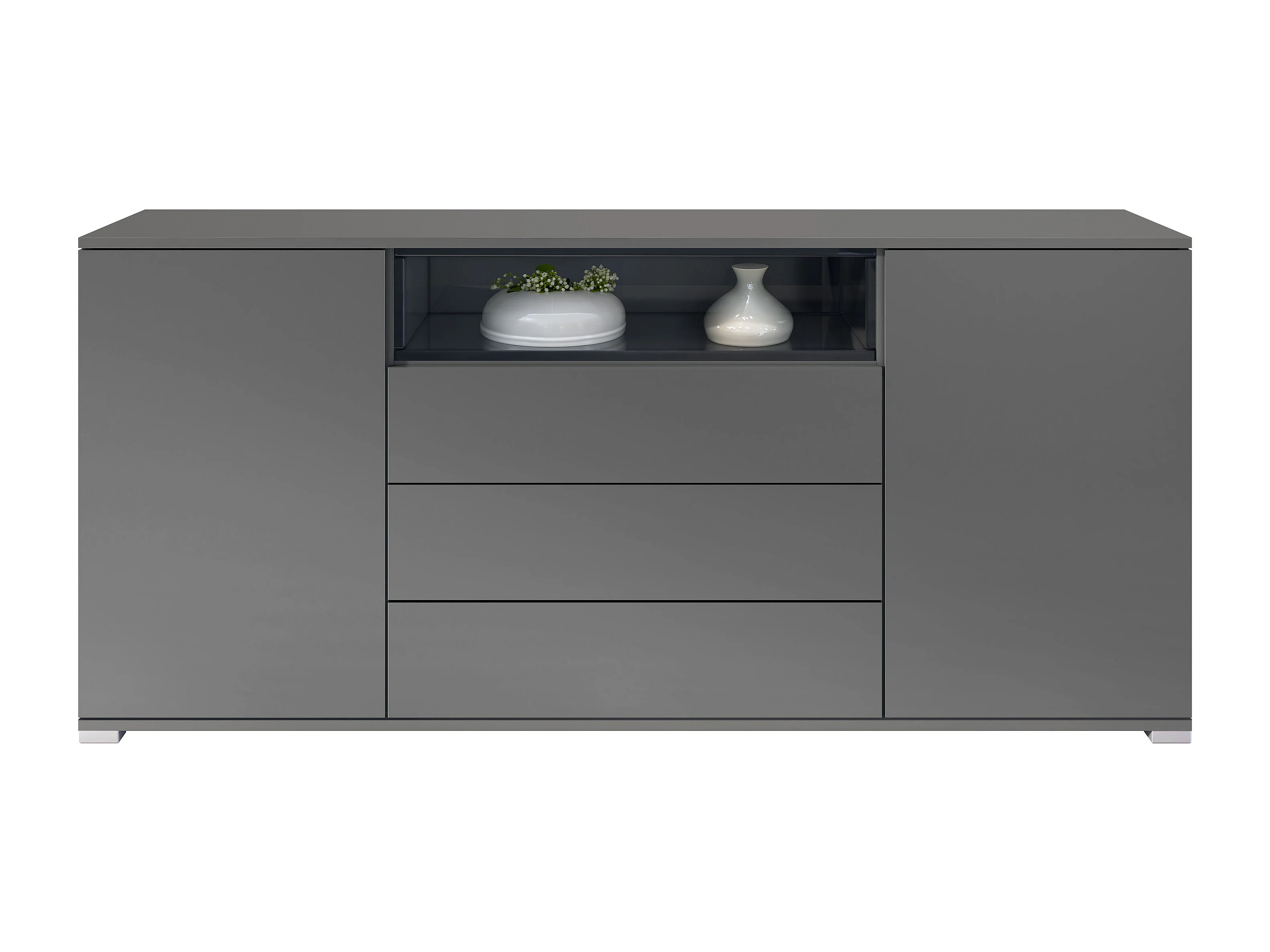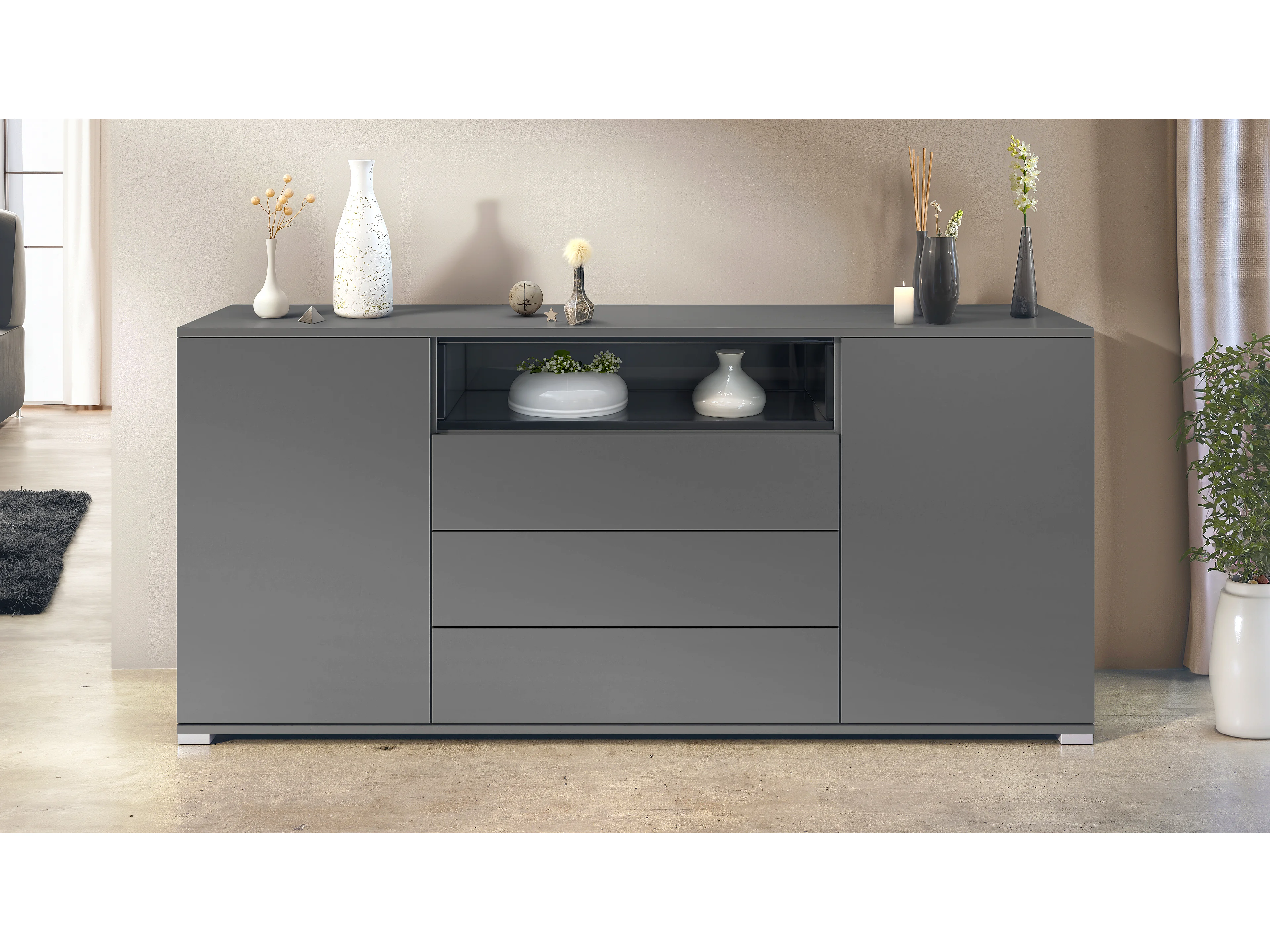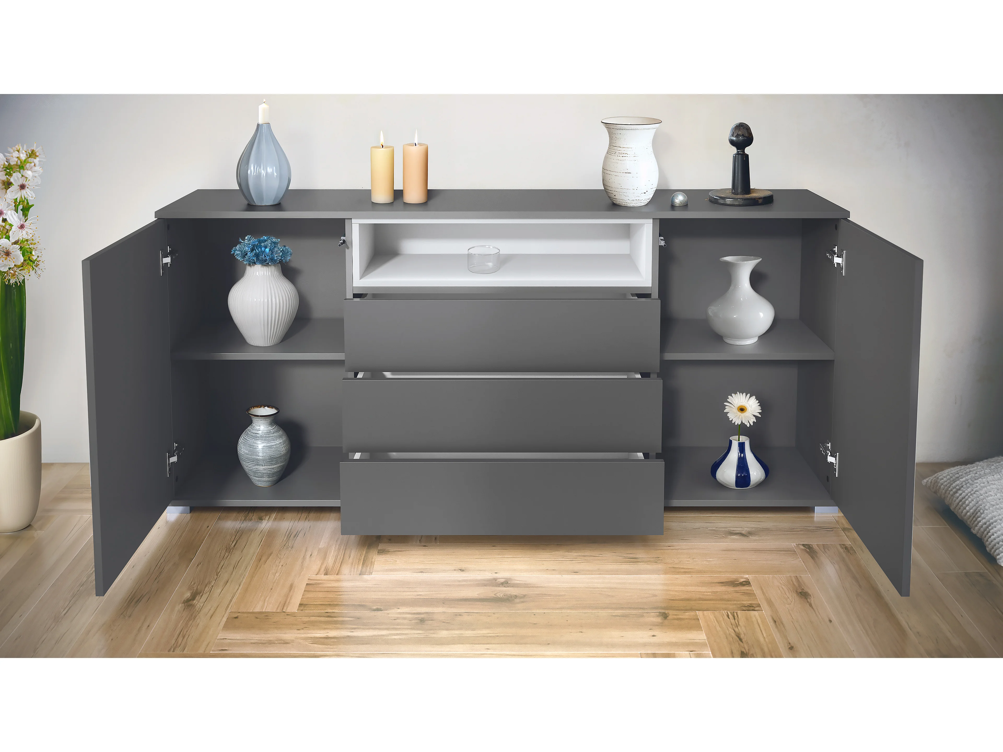 Skadu V4 Cajonera, Cómoda con 2 Puertas, 3 Cajones y 1 Compartimento abierto, antracita mate/negro de alto brillo (166,5 x 75,5 x 35 cm)