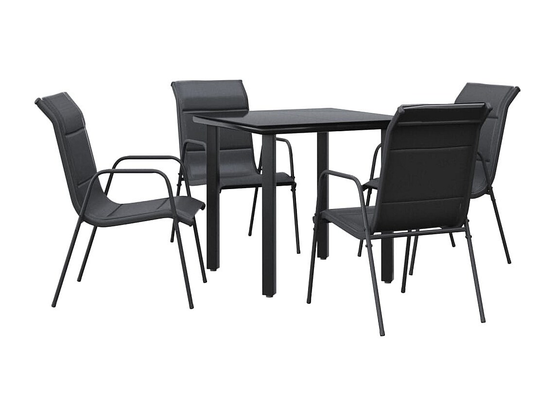 Varlen Juego de comedor para jardín 5 piezas acero y textilene negro