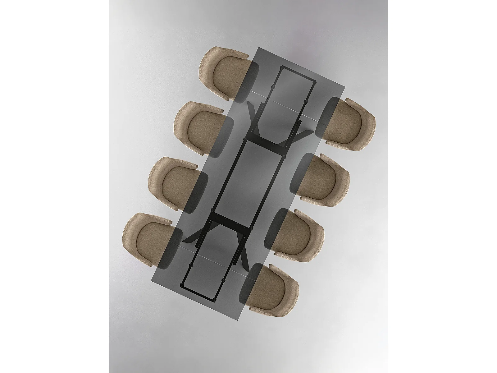 Mesa comedor extensible rectangular cristal templado y acero negro 1150 ANGEL CERDA