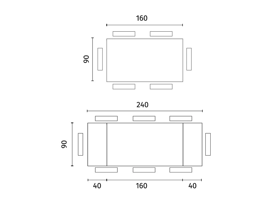 Mesa extensible Match 3 (160/240 x 90 cm) en cerámica negra