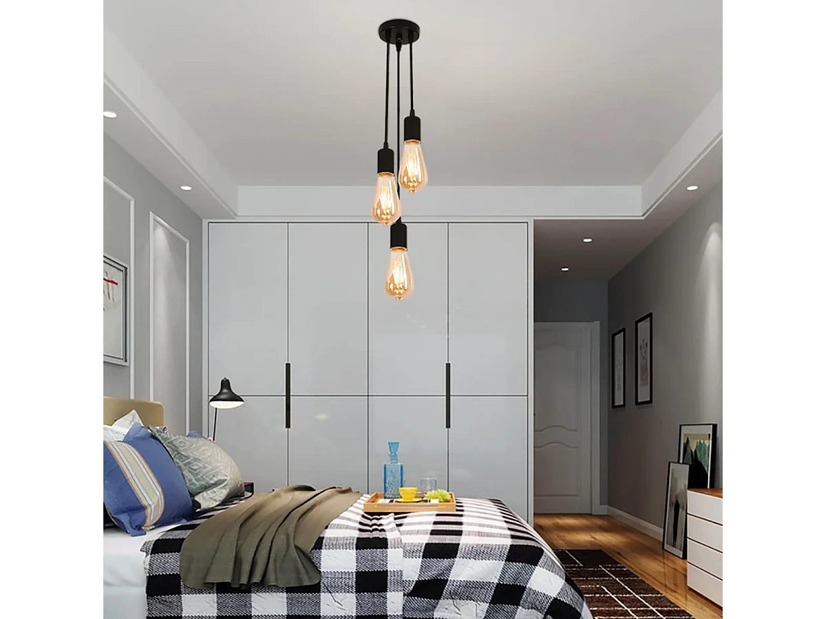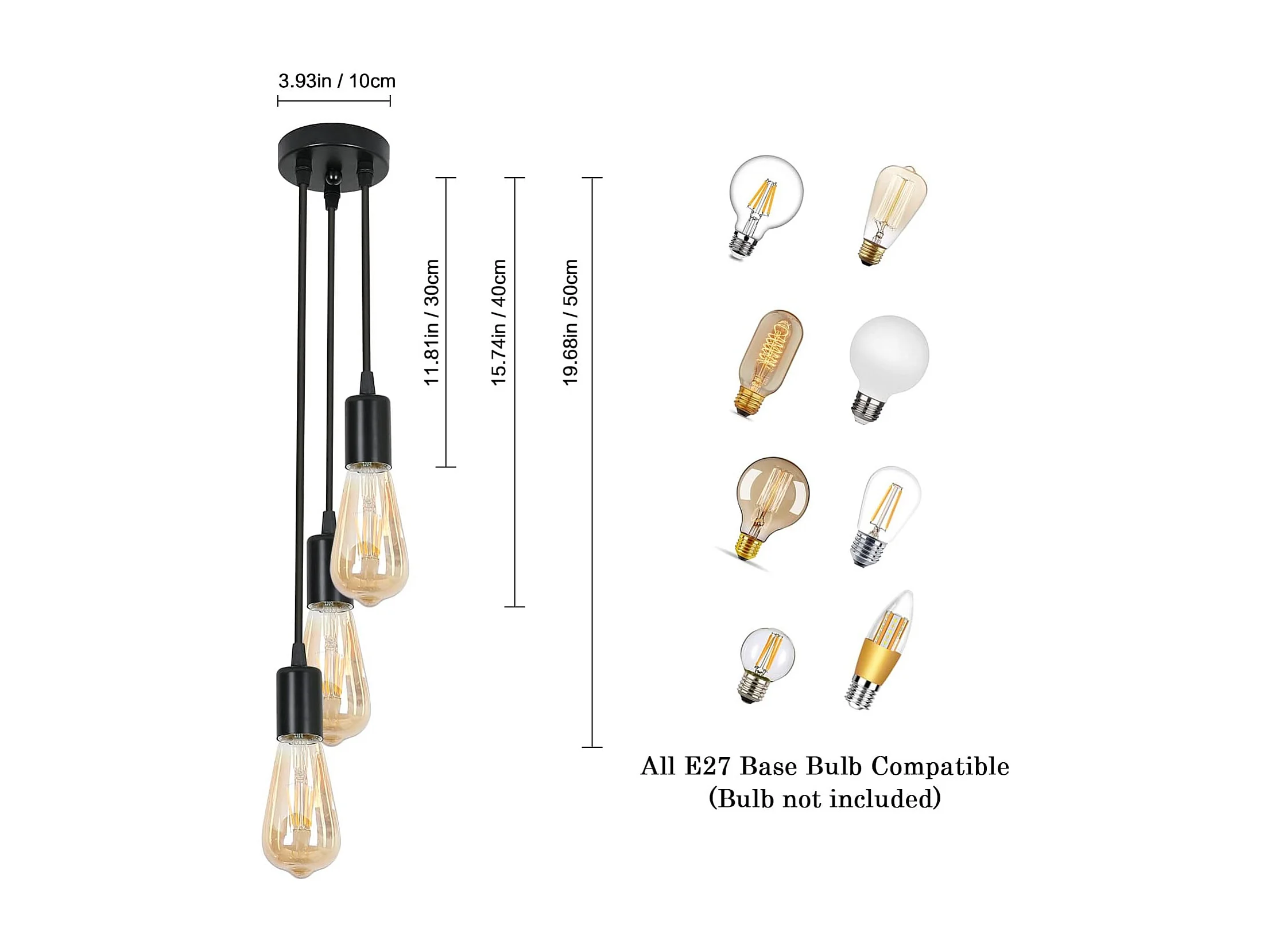 Sobre la suspensión de enchufes de lámpara industrial 3, 30+40+50 cm, negro, luz de techo sin bombilla E27