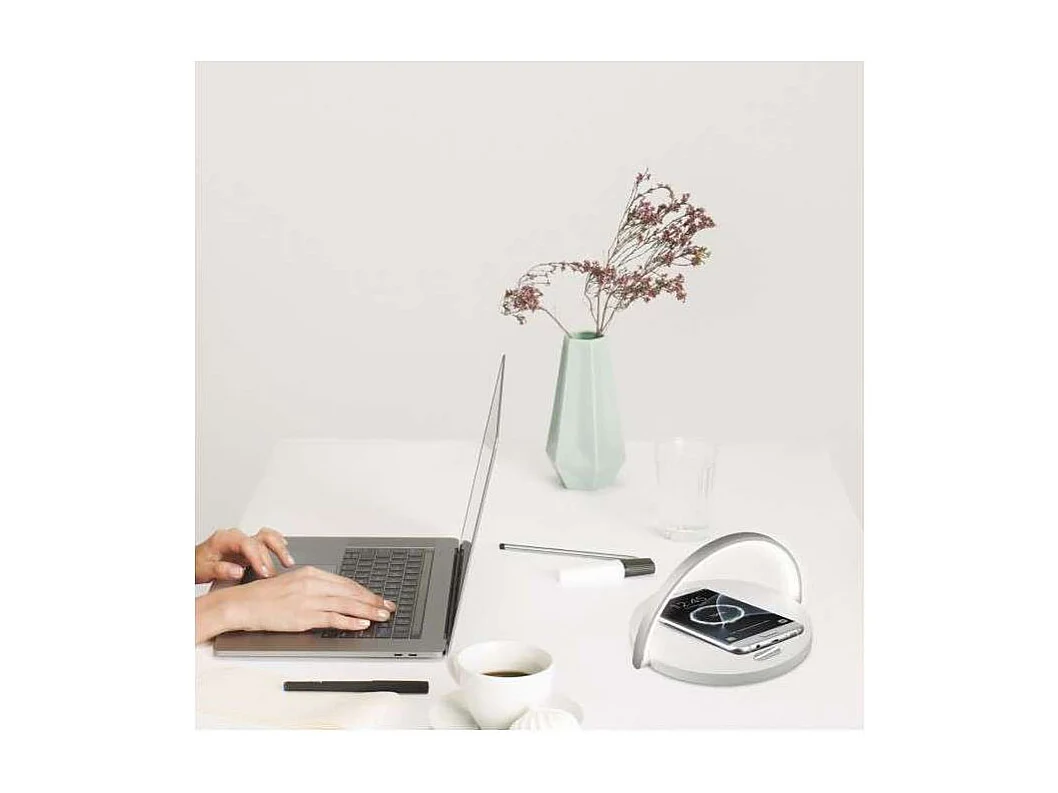 Sobremesa con cargador modelo Luxo acabado blanco 10cm(alto) 20 cm(ancho) 20 cm (fondo)
