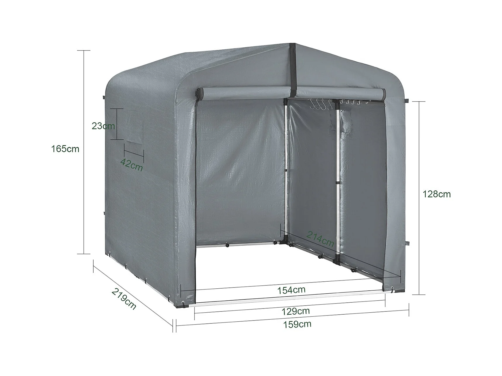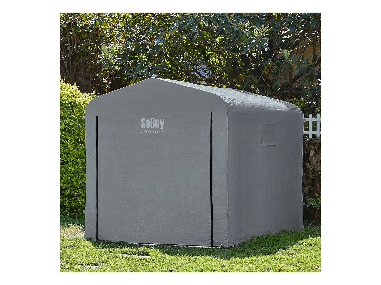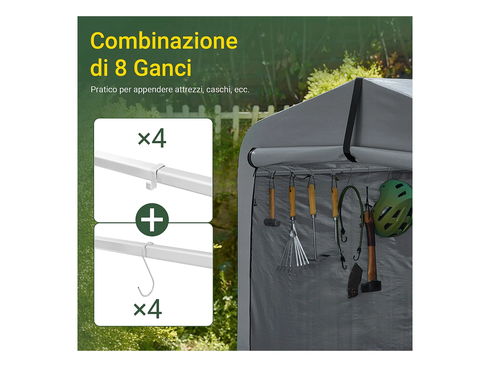 SoBuy cobertizo de jardín impermeable para motos y herramientas con ganchos gris 159x219x165 cm