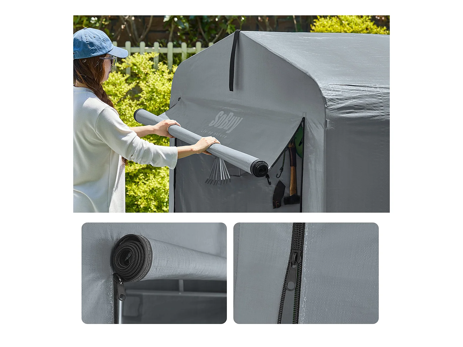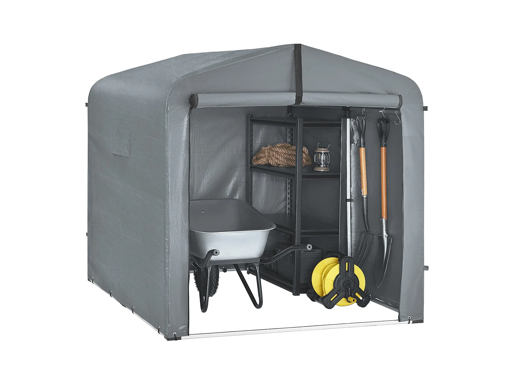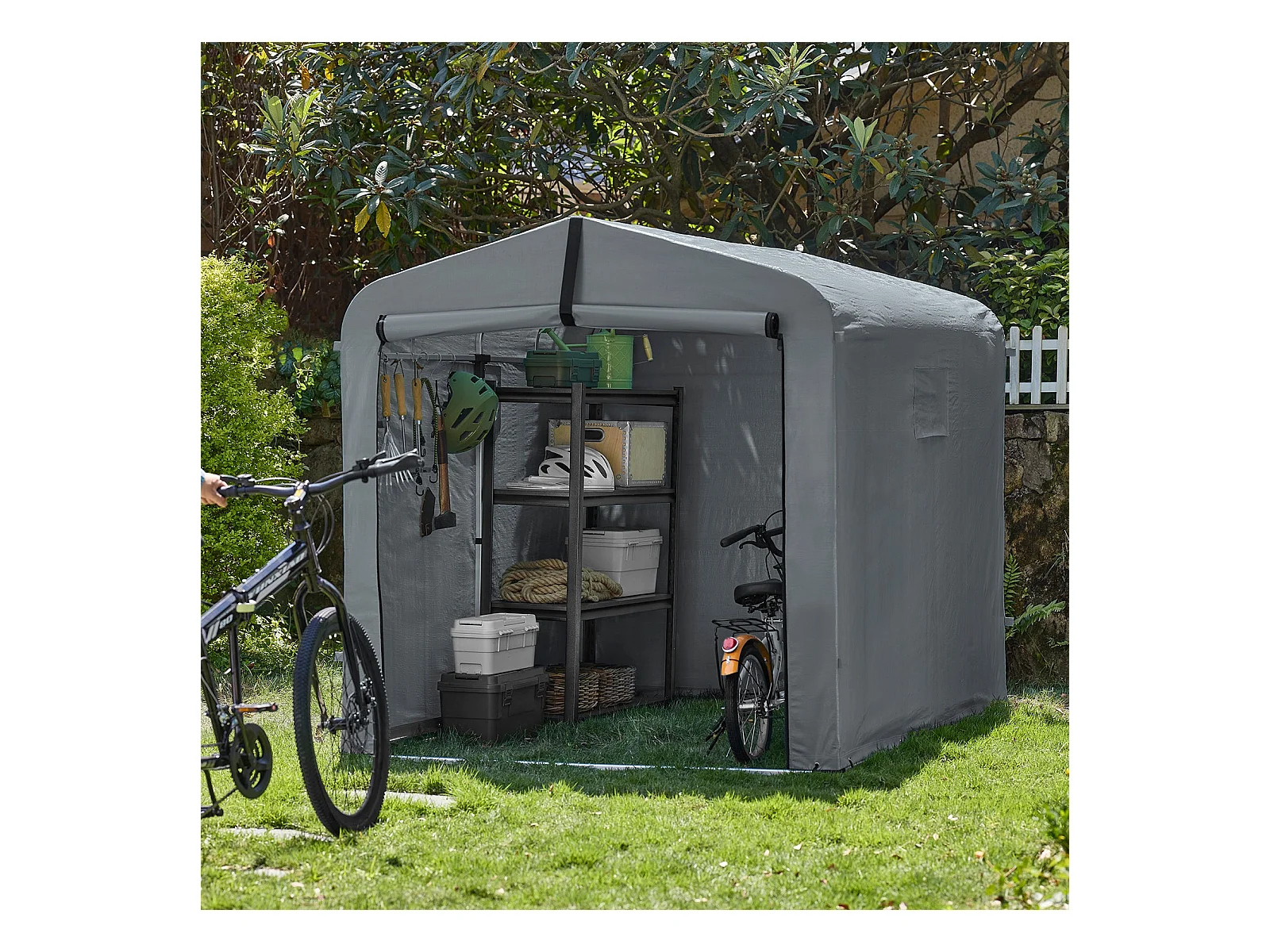 SoBuy cobertizo de jardín impermeable para motos y herramientas con ganchos gris 159x219x165 cm