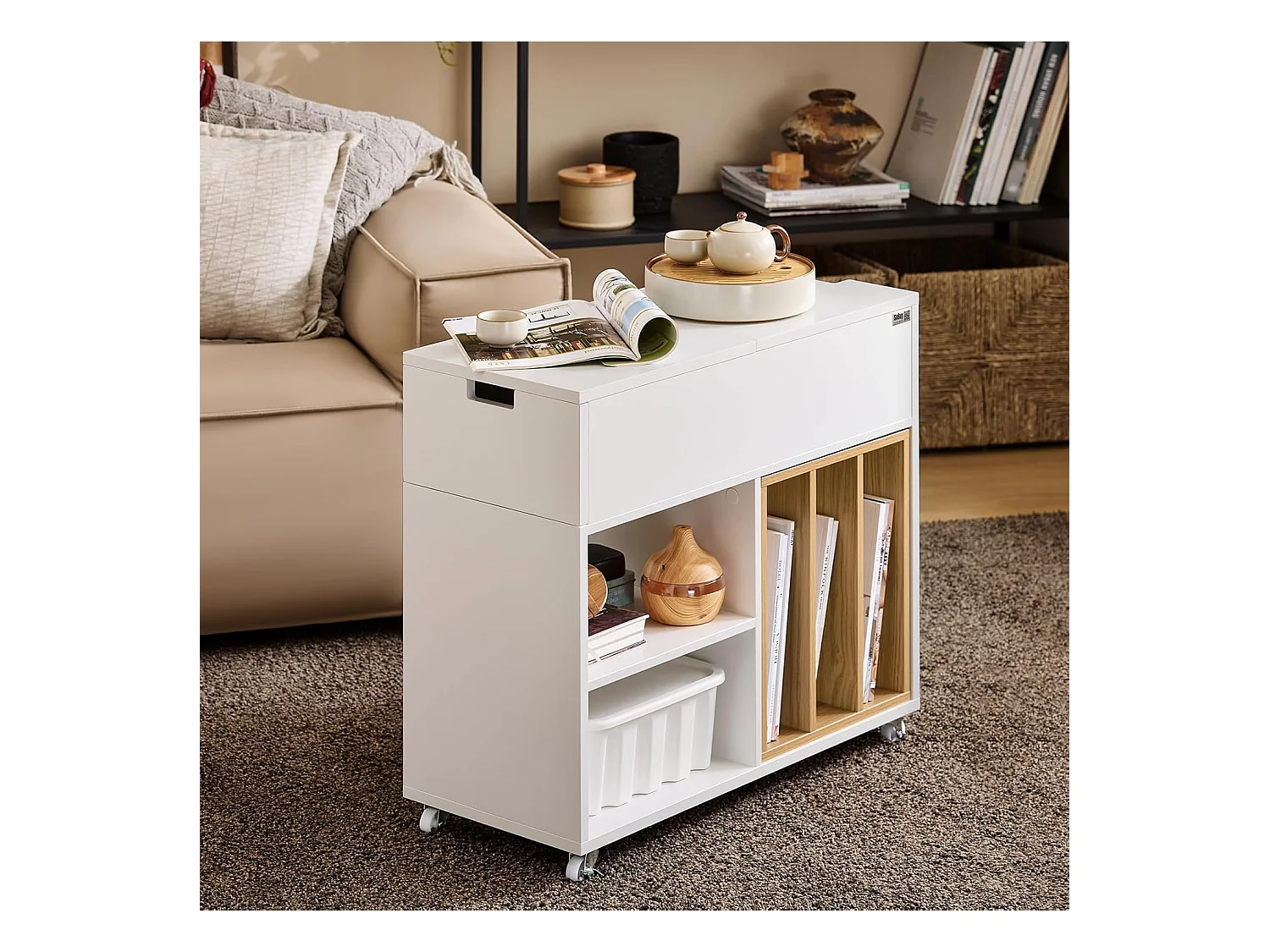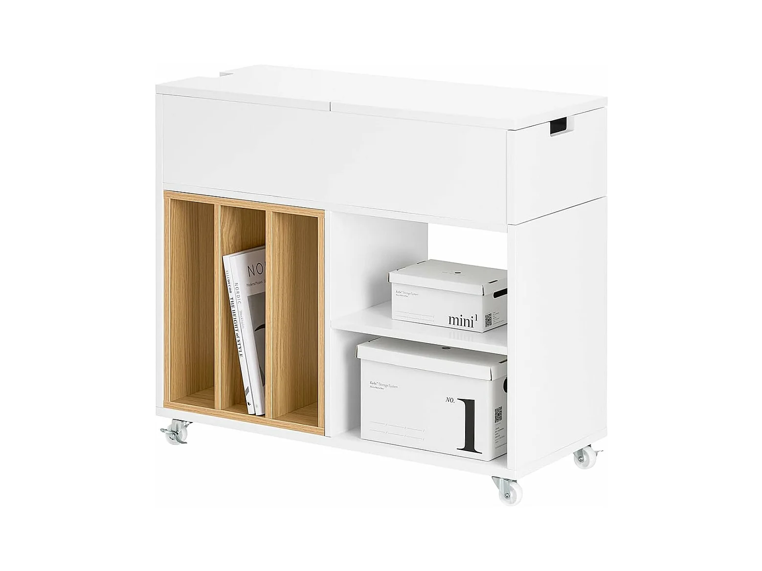 SoBuy FBT155-WN Mesa auxiliar con Ruedas Carrito con 2 cajones 50 x 20 x 61 cm
