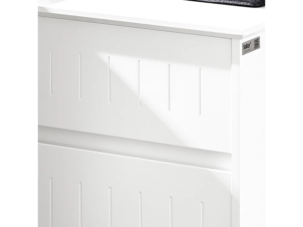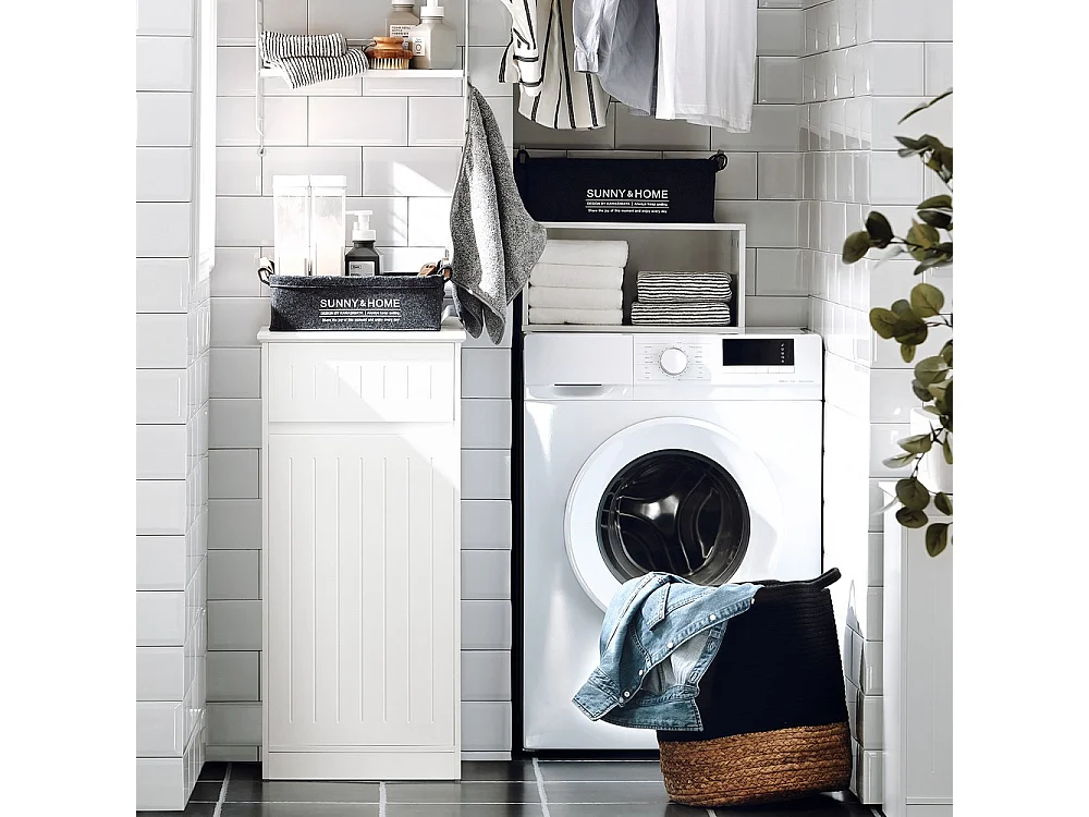 SoBuy Mueble de Baño con Cesta y Cajón - Armario de Madera Blanca