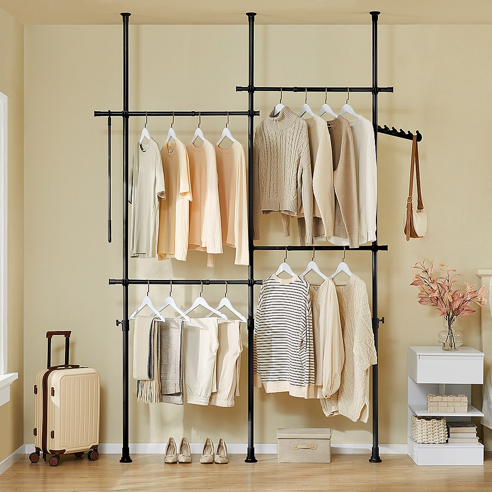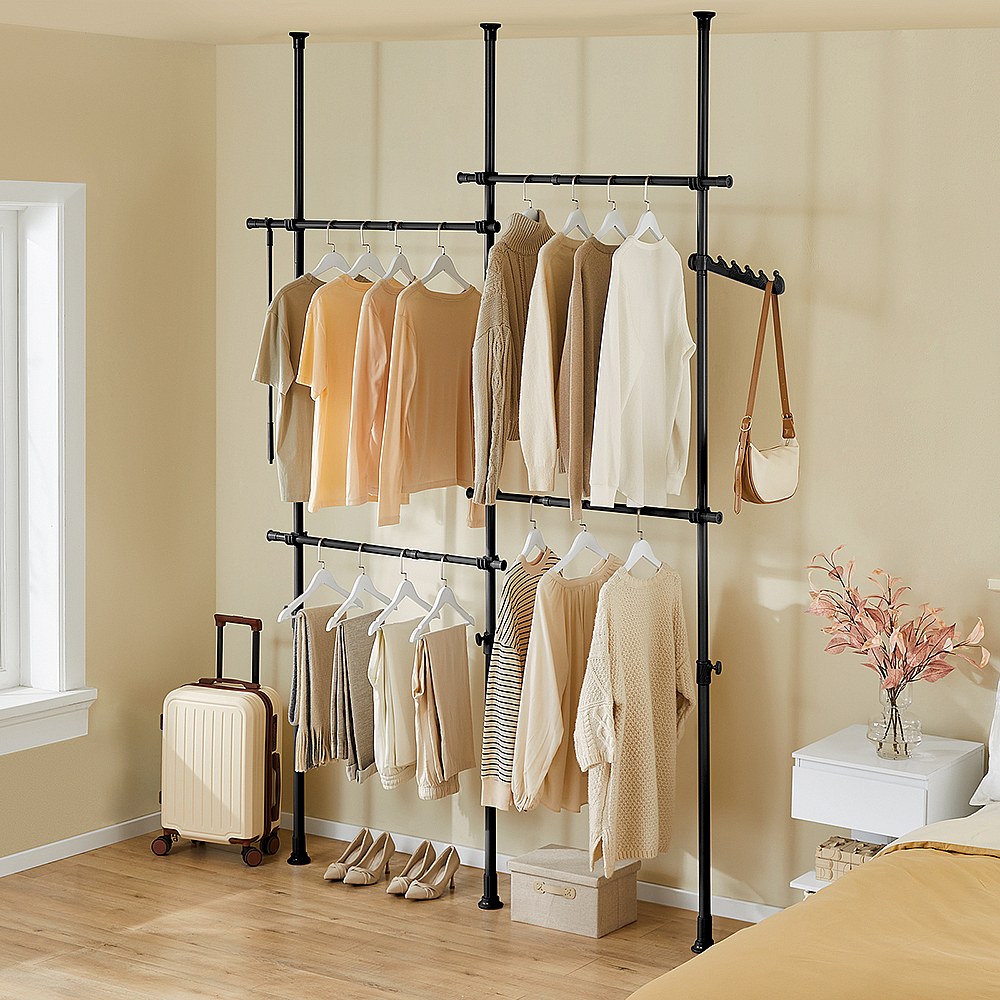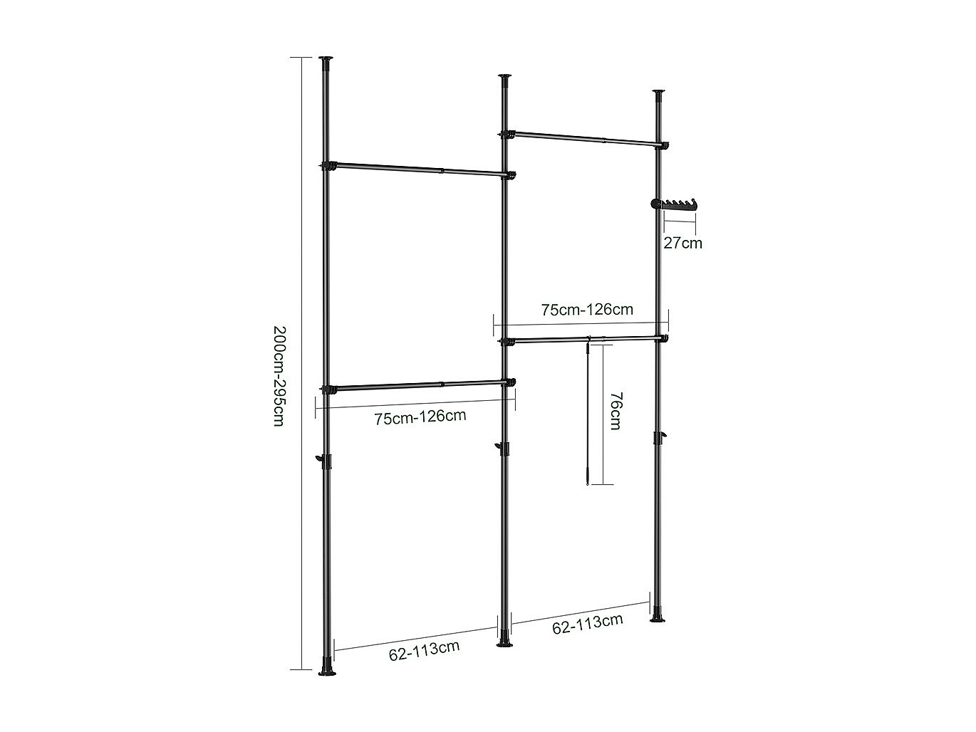 SoBuy Perchero de Pie Telescópico, Soporte para Ropa Ajustable en Negro
