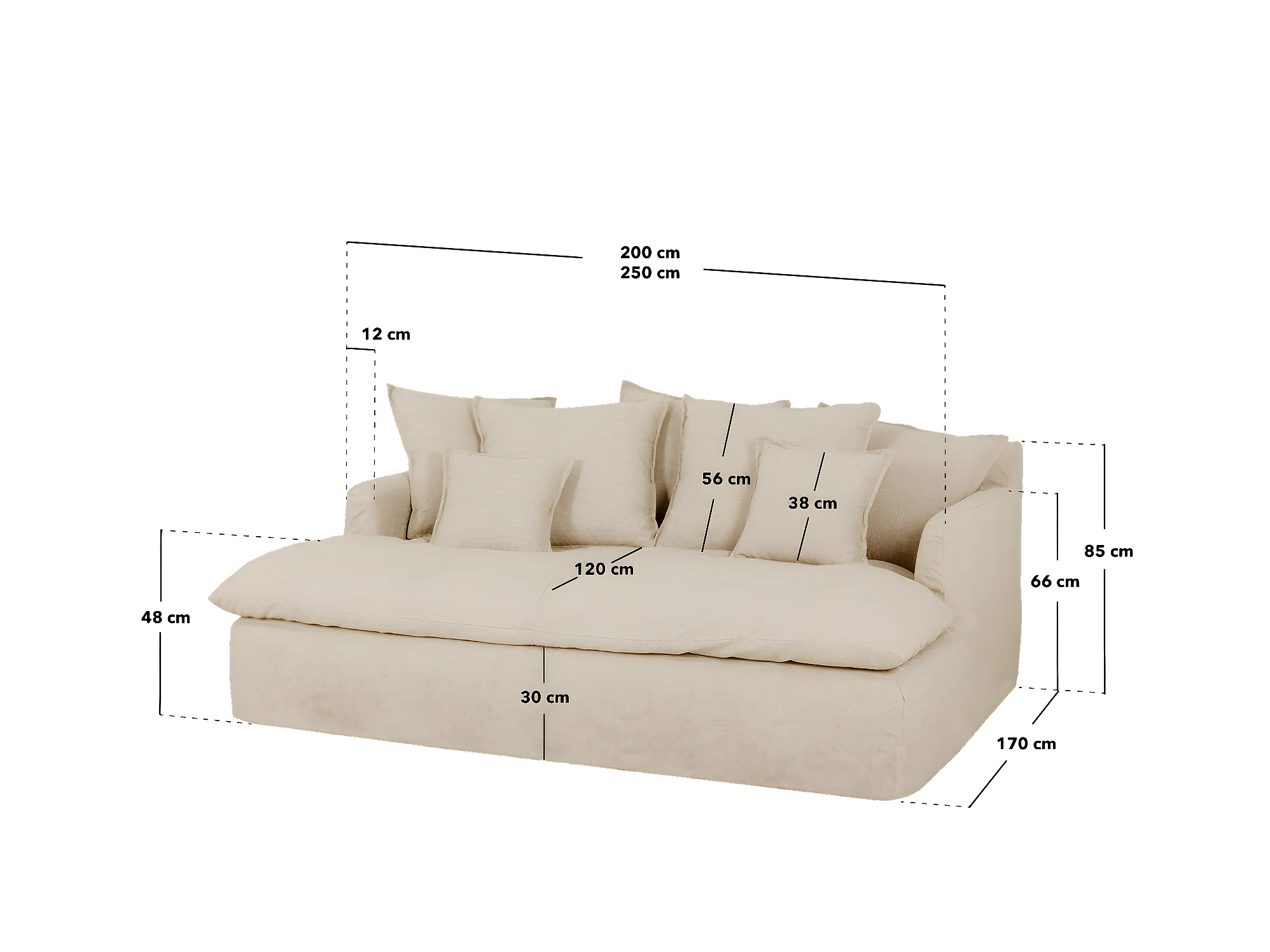 Sofá 2/3 plazas fondo largo de algodón y lino desenfundable blanco 250x95x170cm - MIA - DECOWOOD