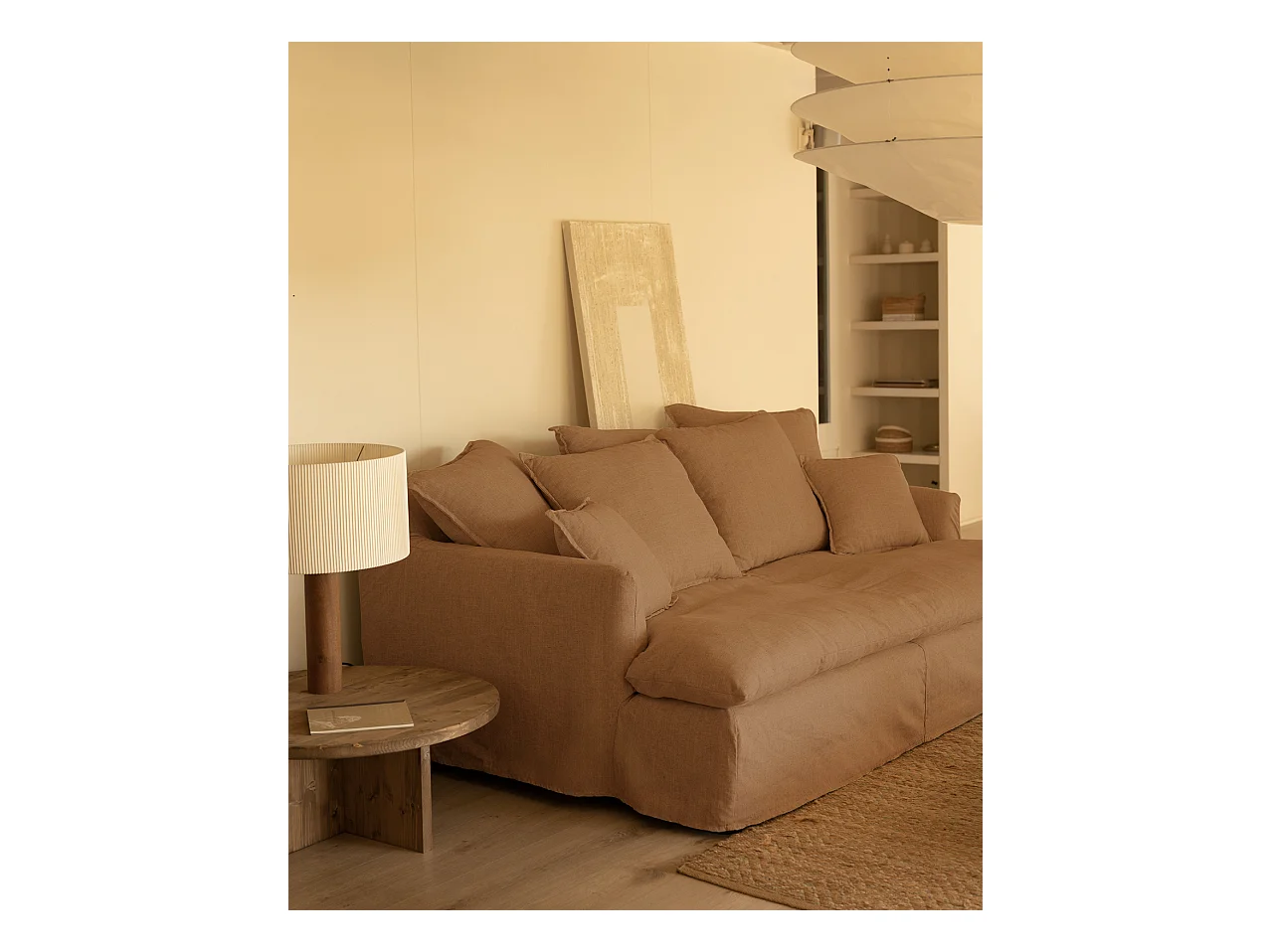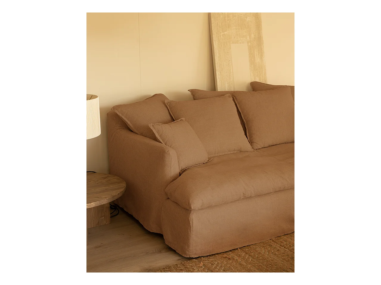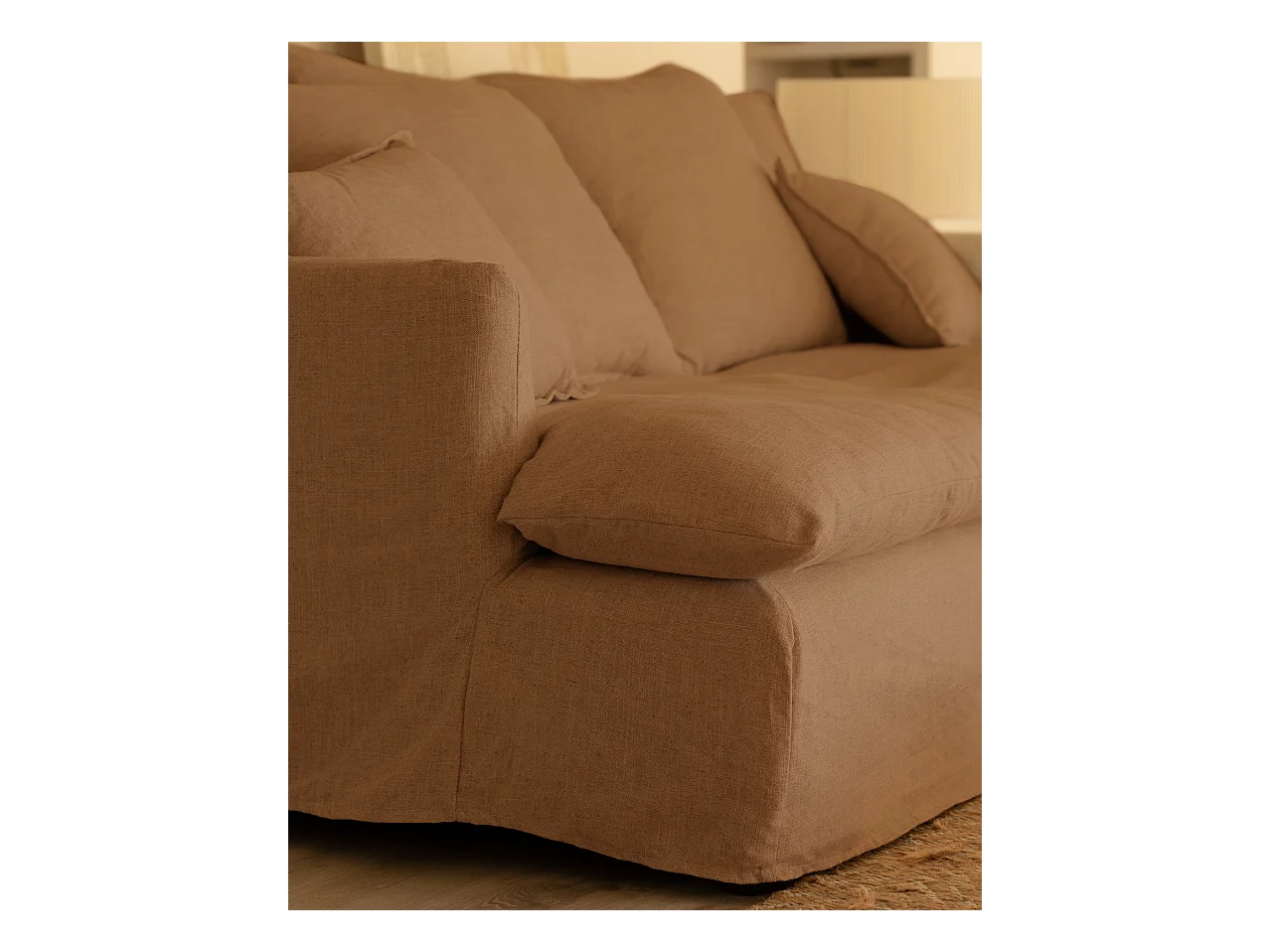 Sofá 2/3 plazas fondo medio de algodón y lino desenfundable teja 250x95x130cm - MIA - DECOWOOD