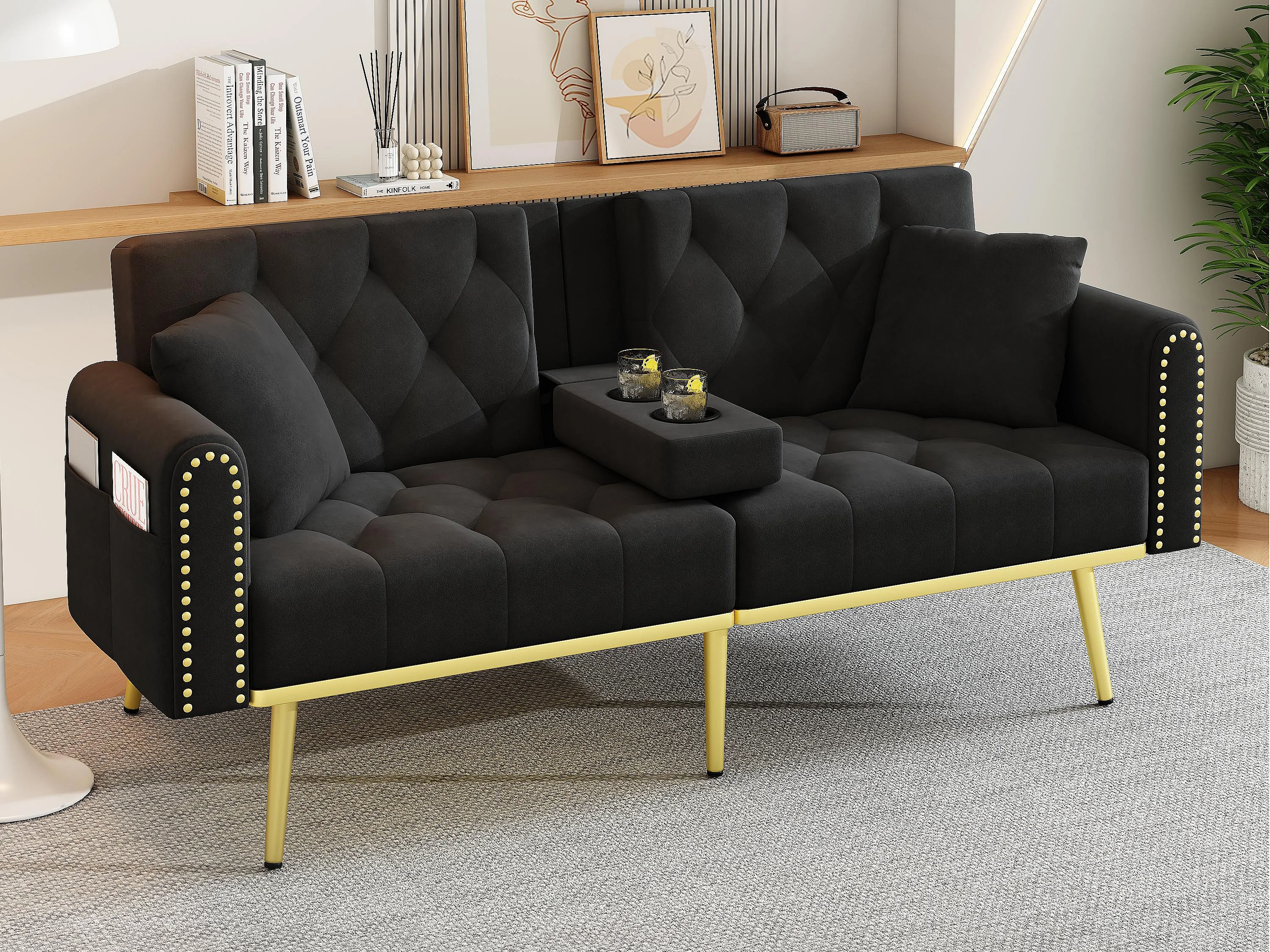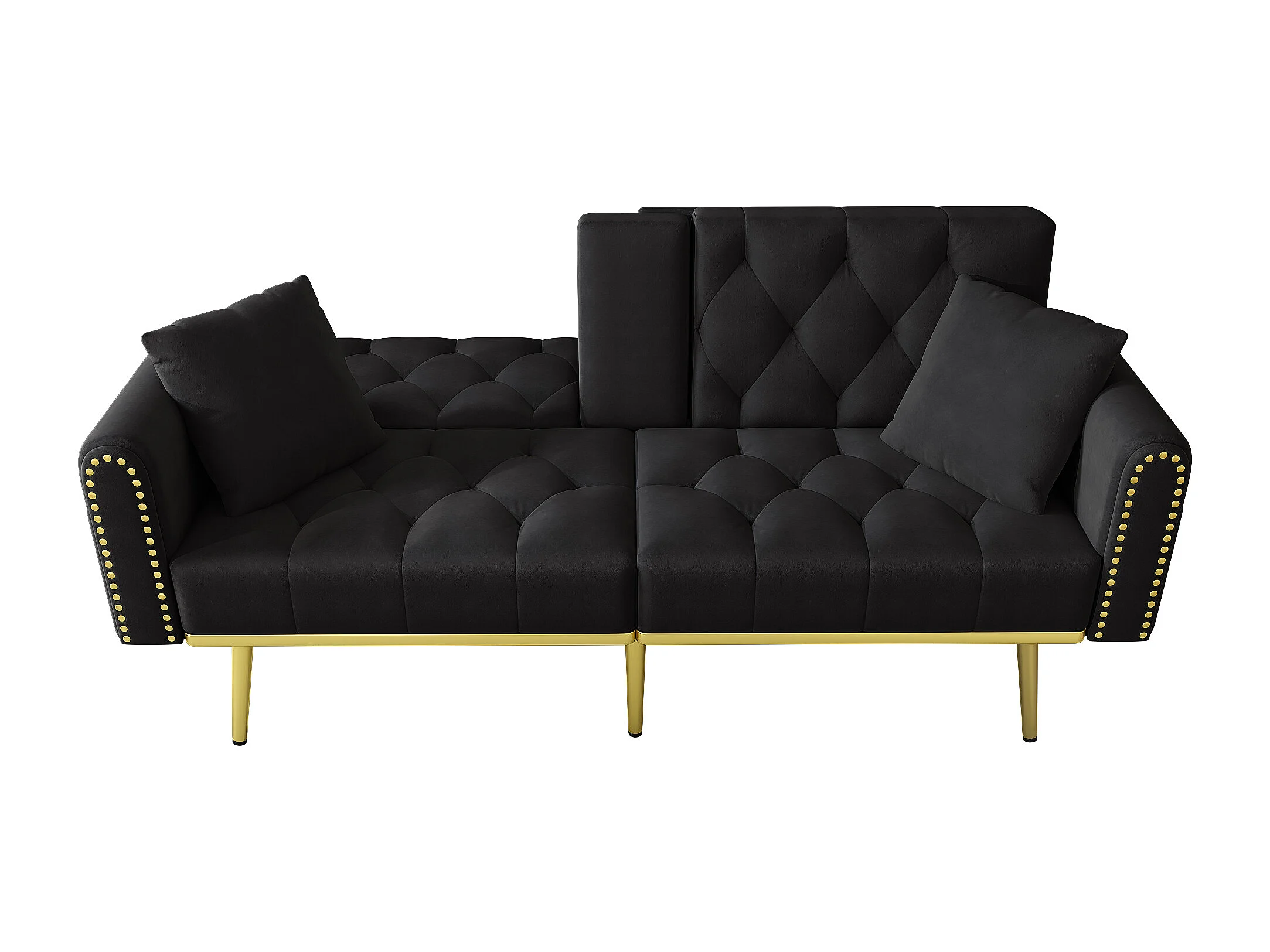 Sofá 2 plazas - con función relax - tres posiciones de inclinación ajustables - portavasos incluido - negro