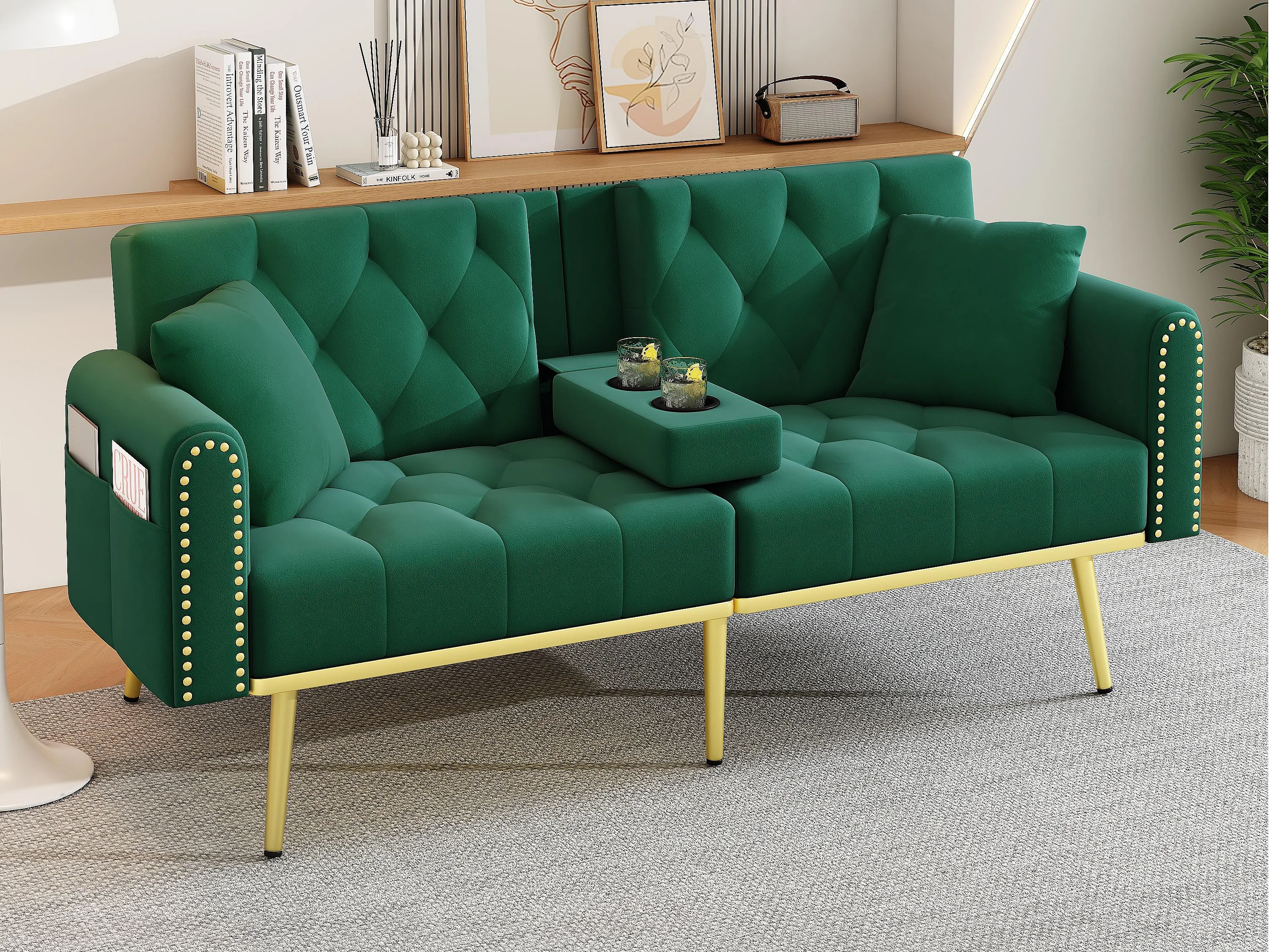 Sofá 2 plazas - con función relax - tres posiciones de inclinación ajustables - portavasos incluido - verde