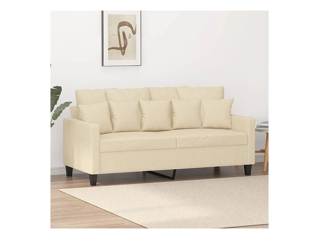 Sofá de 2 plazas con cojines color crema de 140 cm en piel sintética.