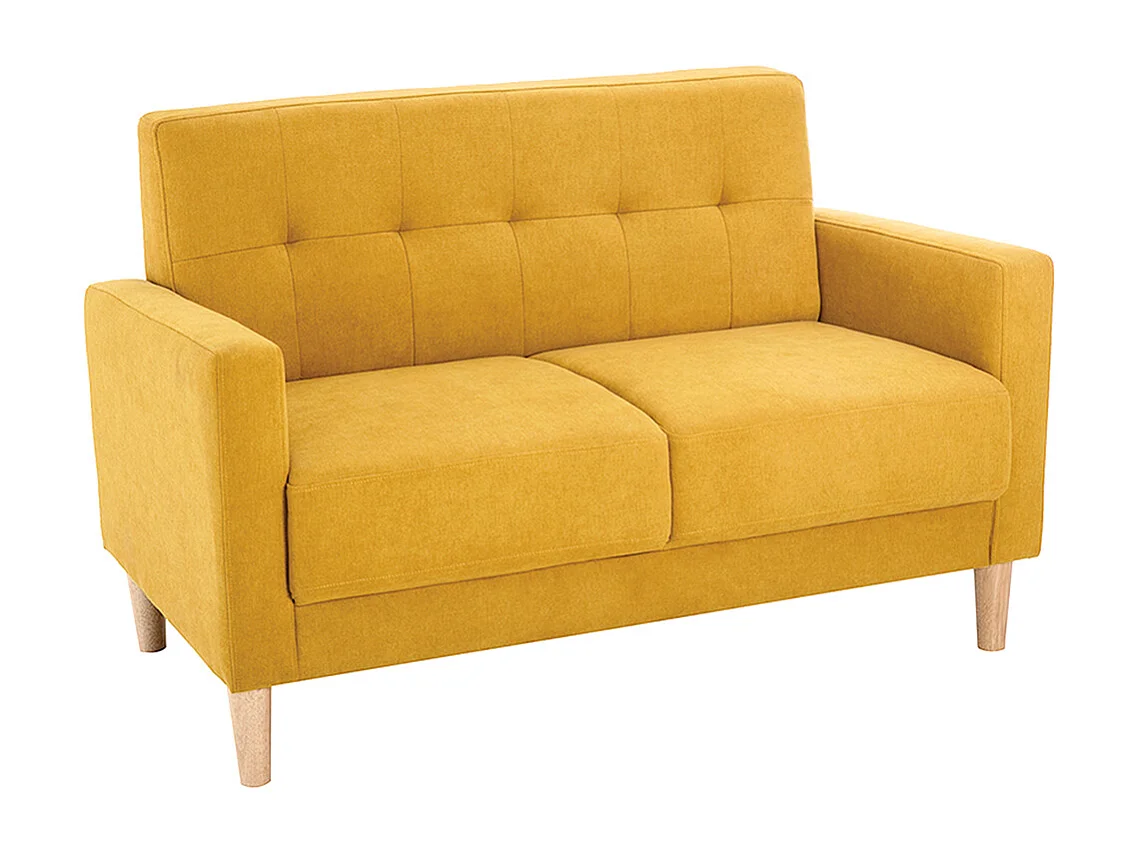 Sofá 2 plazas de estilo nórdico amarillo mostaza con efecto aterciopelado MOON