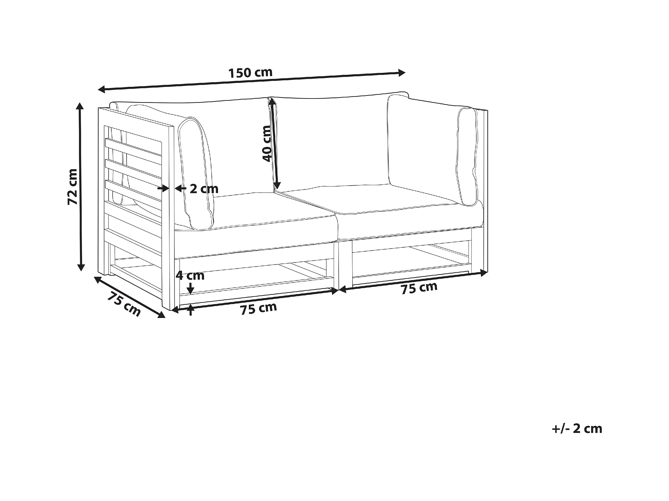 Sofá de jardín 2 plazas TRANI modular Madera de acacia certificada Marrón claro
