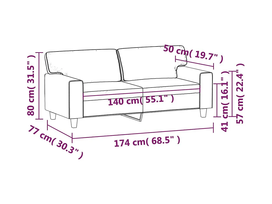 Sofá de 2 plazas con cojines burdeos de tela de 140 cm