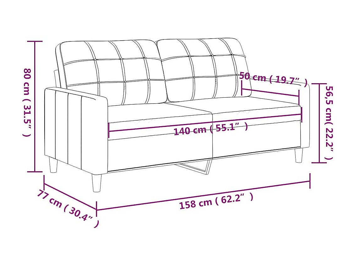 Sofá 2 plazas Rojo burdeos 140 cm Piel sintética