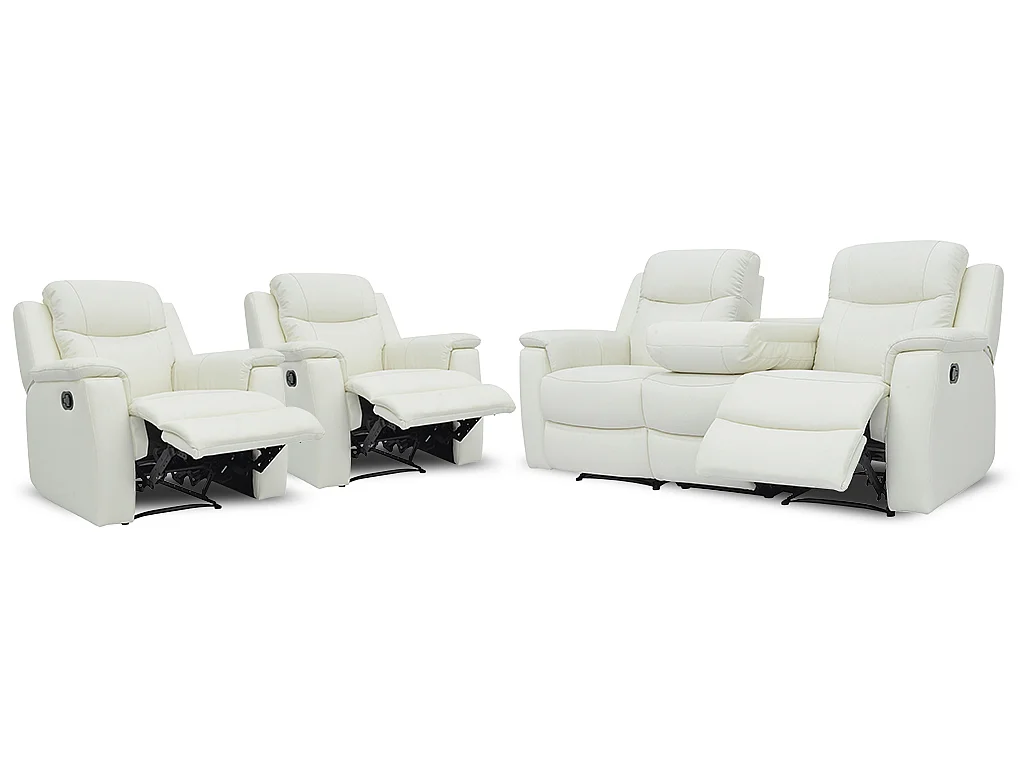 Sofá 3+1+1 plazas relax EVASION de piel - Blanco marfil