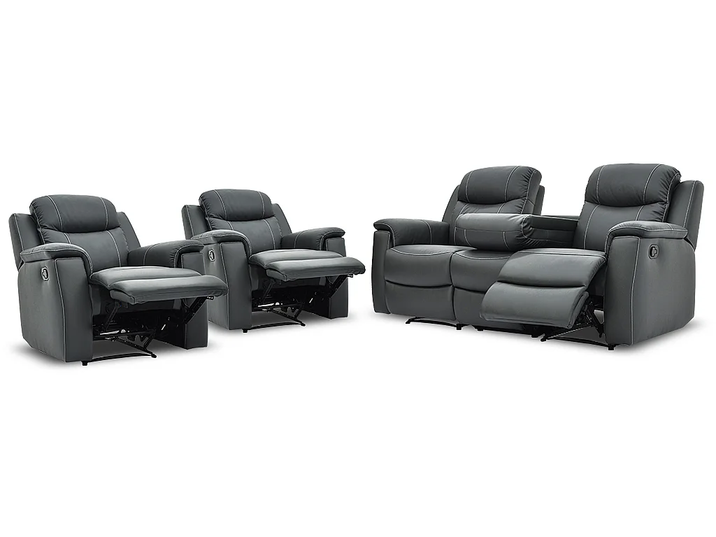 Sofá 3+1+1 plazas relax EVASION de piel - Gris
