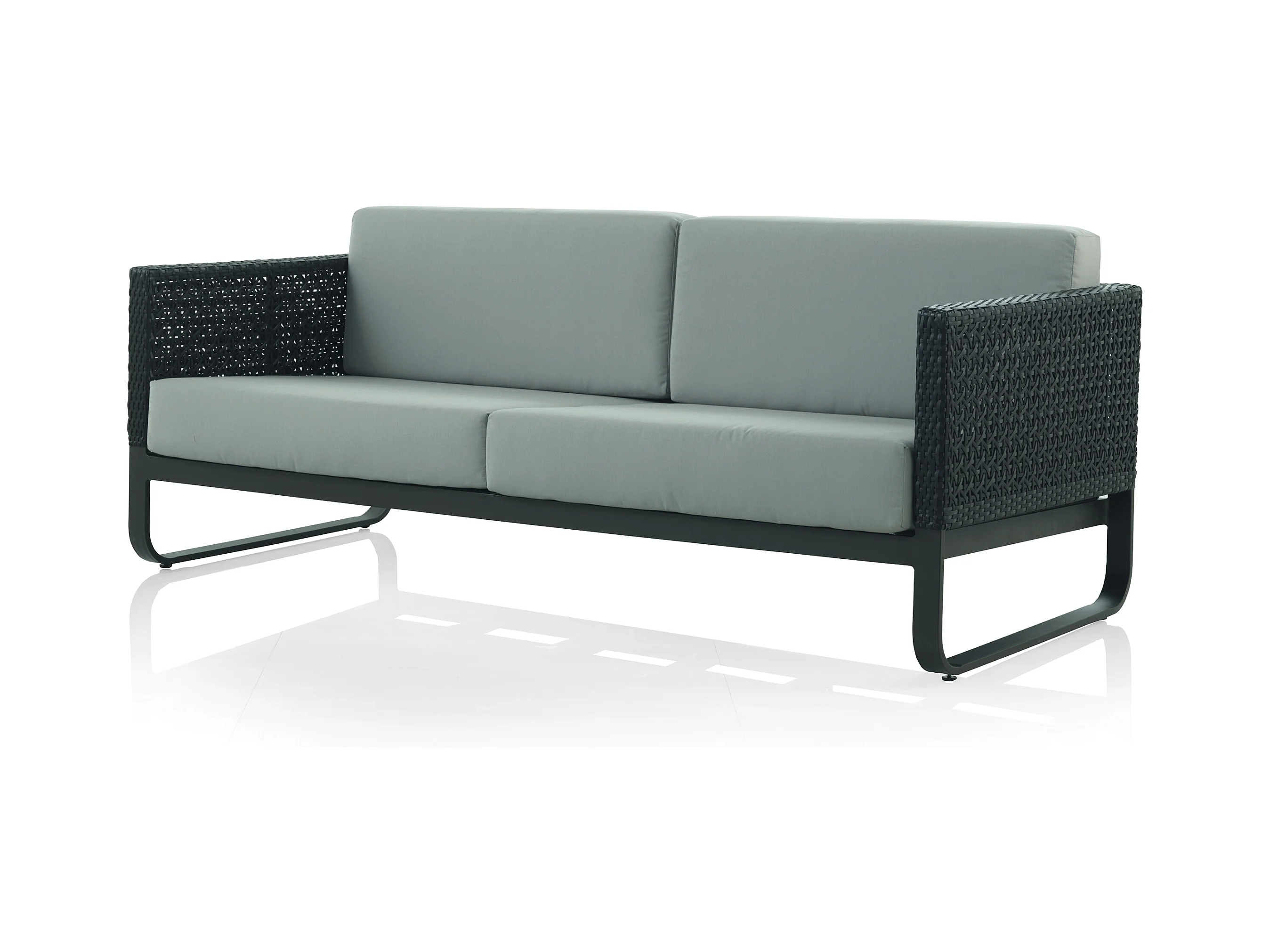 Sofá 3 plazas aluminio marrón y fibra sintética con cojines grises