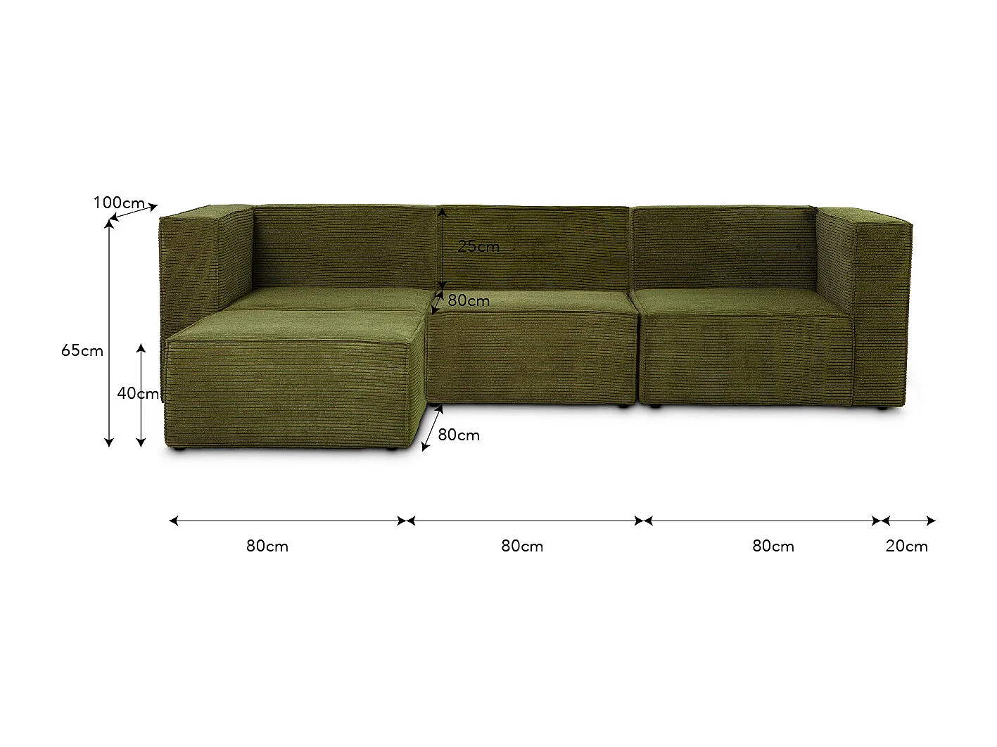 Sofa 3 plazas Chaiselongue tapizado pana verde