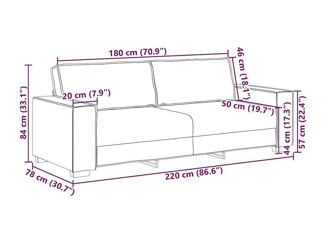 Sofá 3 plazas con cojín Tela marrón 220 x 78 x 84 cm