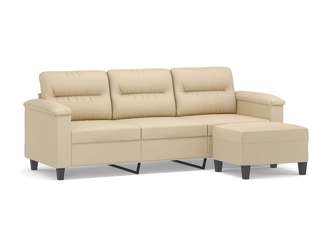 Sofá 3 plazas con reposapiés Crema 180 cm Tejido microfibra