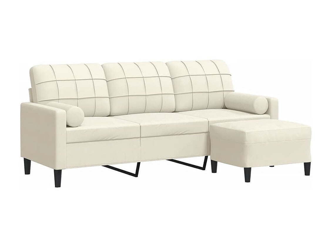 Sofá 3 plazas con reposapiés Crema 180 cm Terciopelo