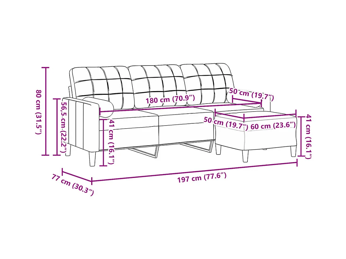 Sofá 3 plazas con reposapiés Gris oscuro 180 cm Terciopelo