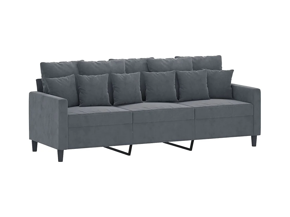 Sofá de 3 plazas con cojines gris oscuro de terciopelo de 180 cm