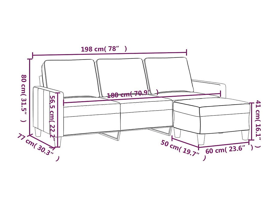 Sofá 3 plazas con reposapiés Cappuccino 180cm Piel sintética