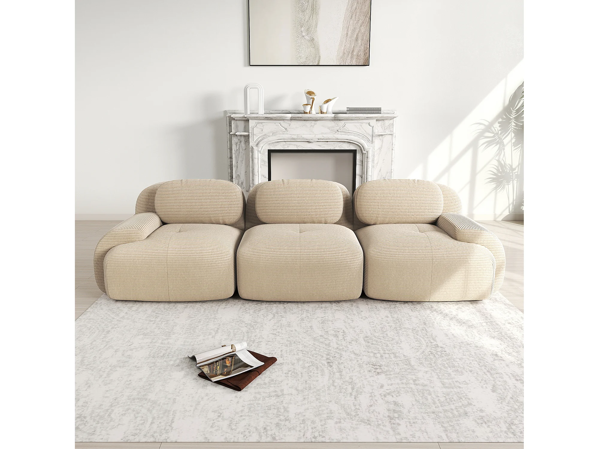 Sofá 3 plazas con respaldo y reposabrazos acolchados, pana beige - para salón y dormitorio
