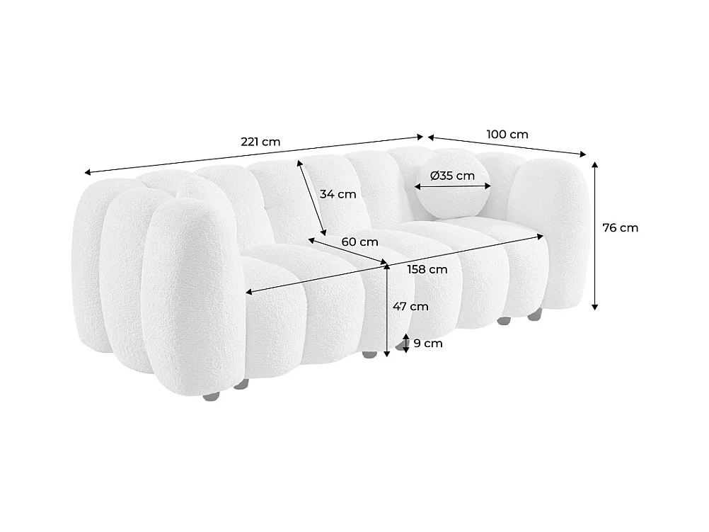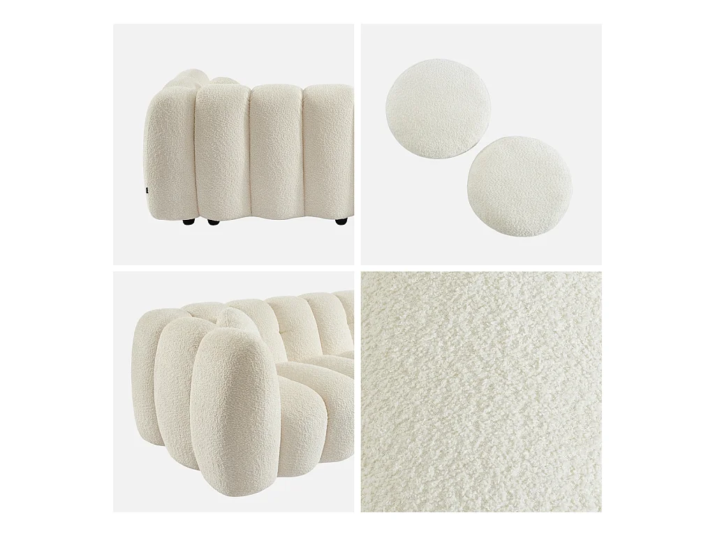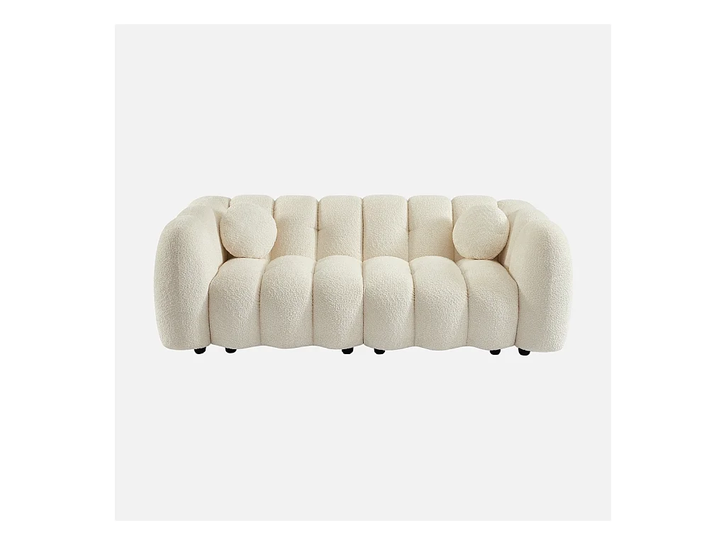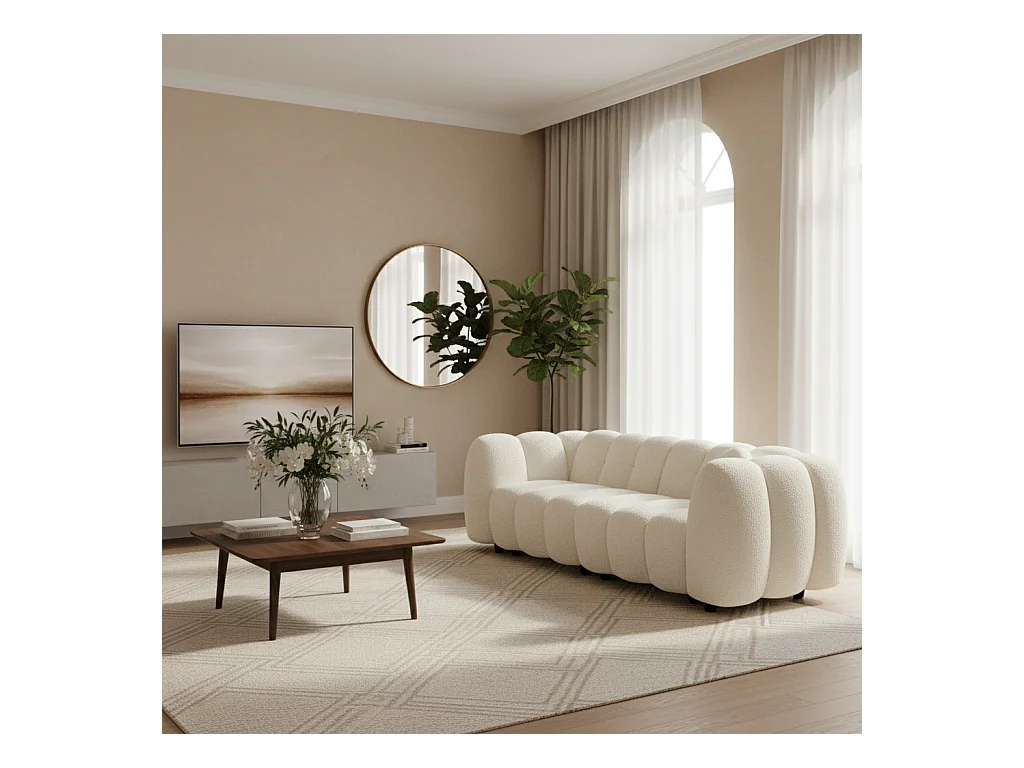 Sofá diseño redondeado con tejido borreguito de 3 plazas crema