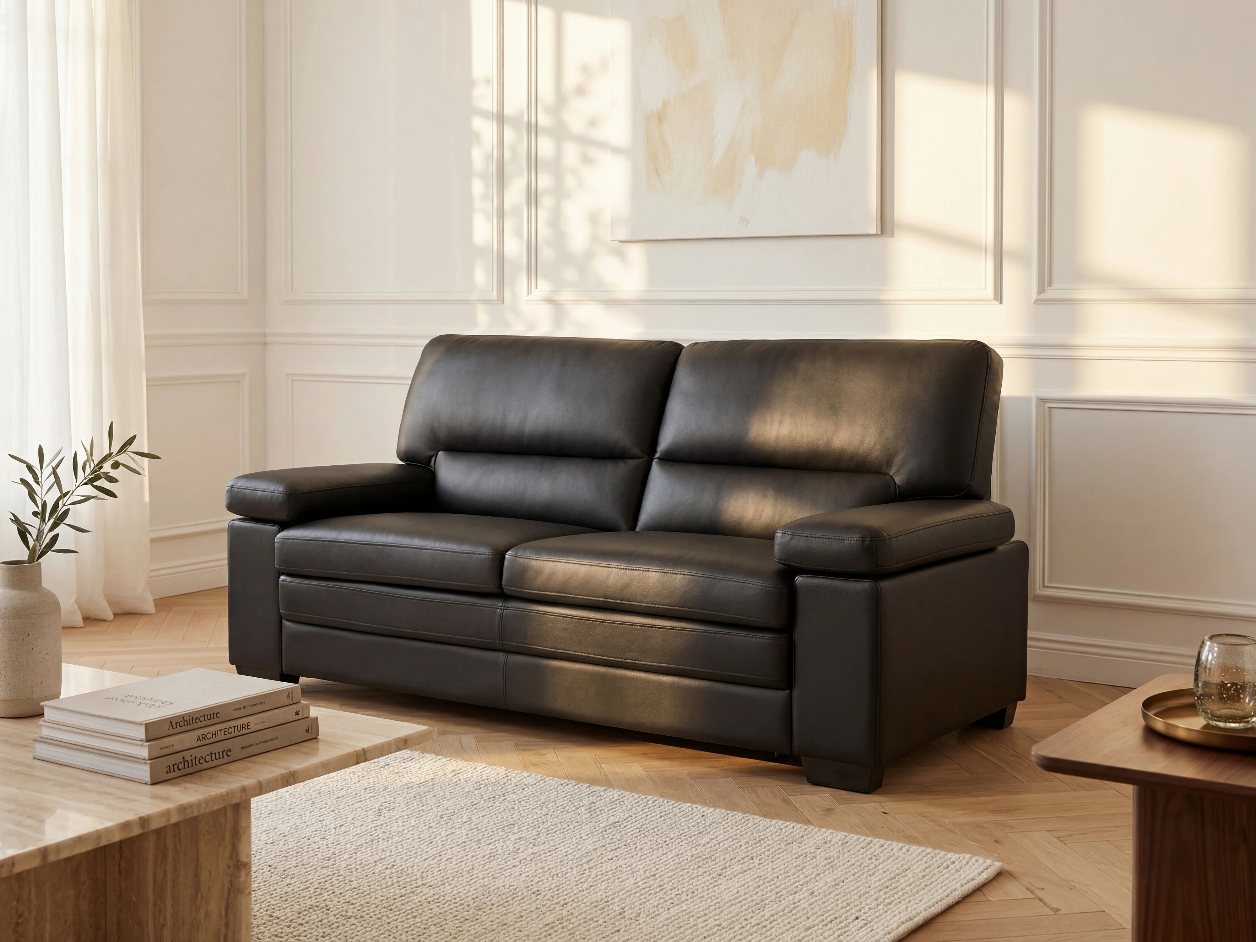 Sofá 3 plazas de piel de búfalo MIMAS - Negro