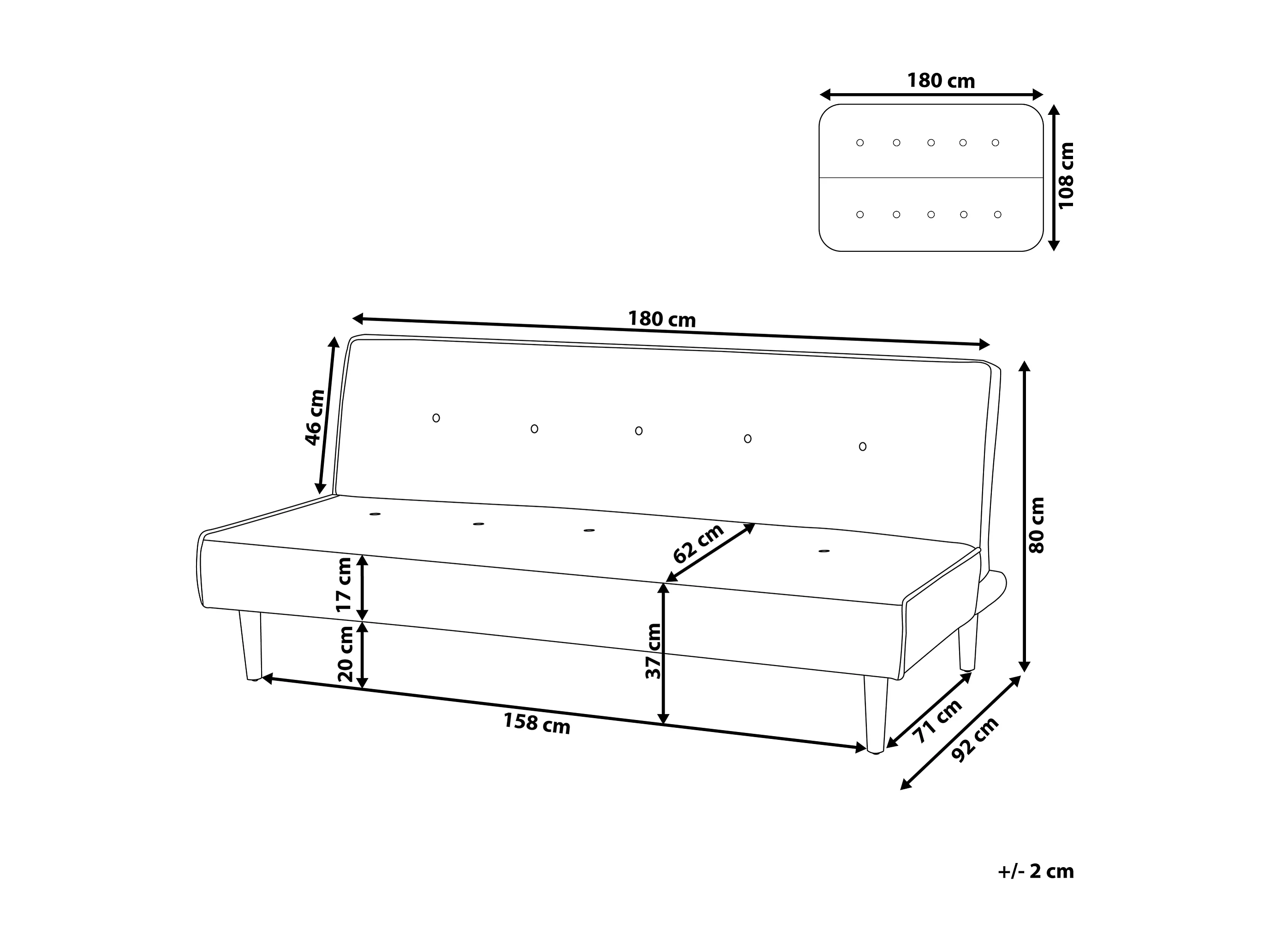 Sofá cama VISBY Tela Gris claro 3 plazas