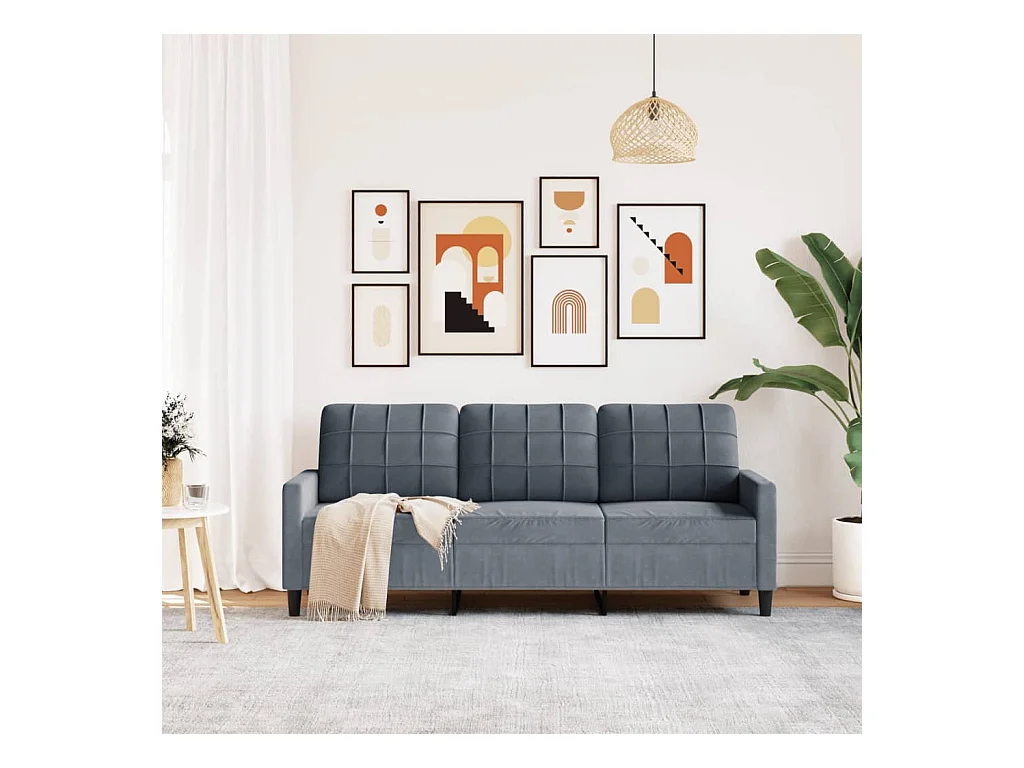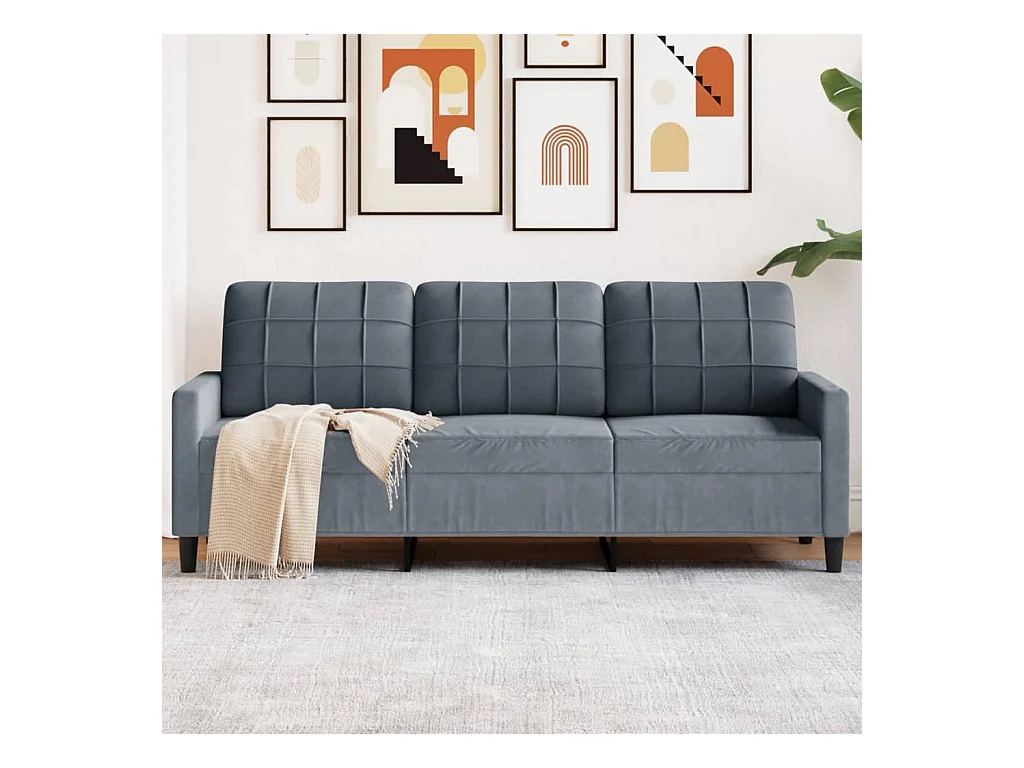 Sofá de 3 plazas con cojines gris oscuro de terciopelo de 180 cm