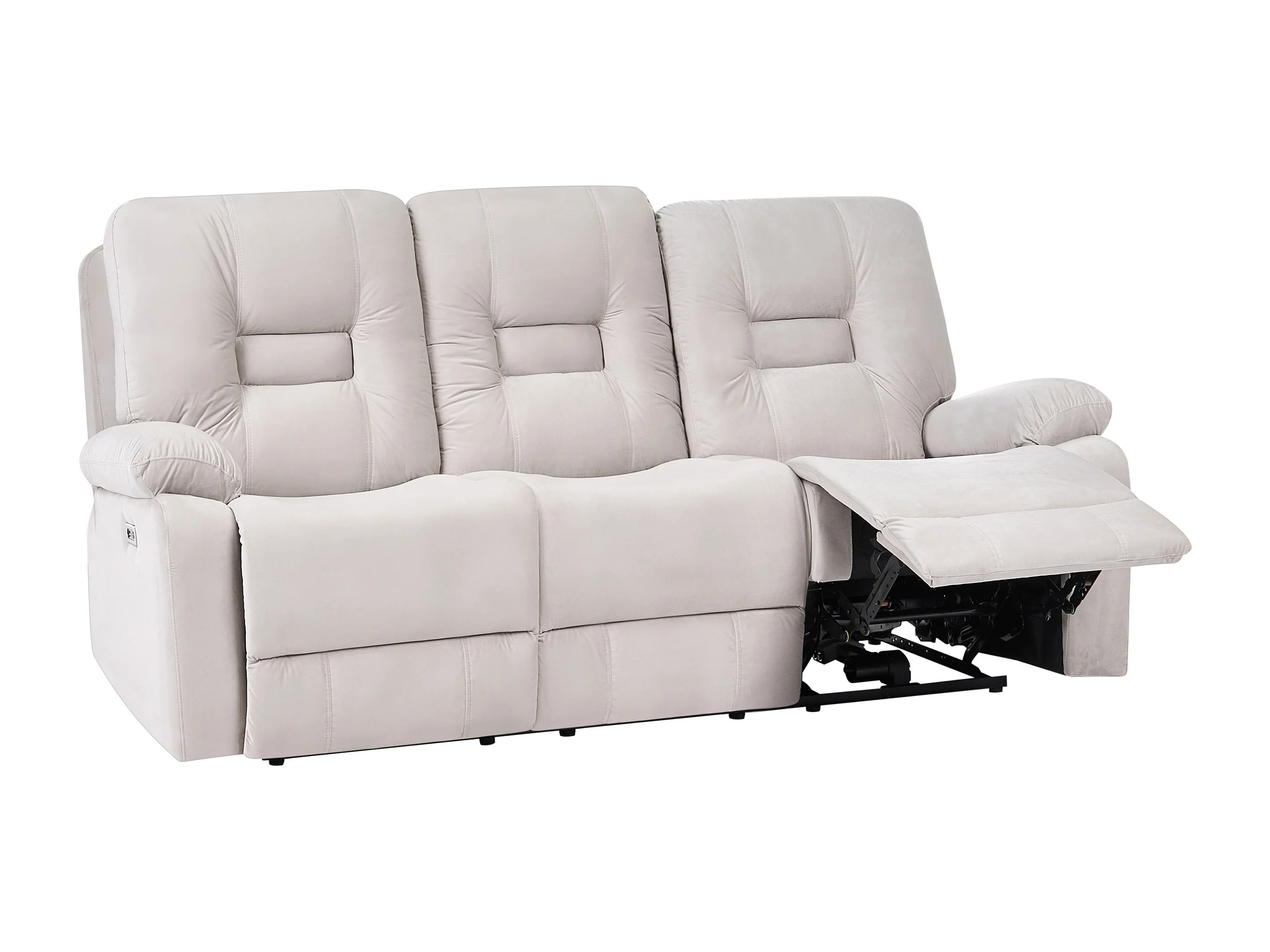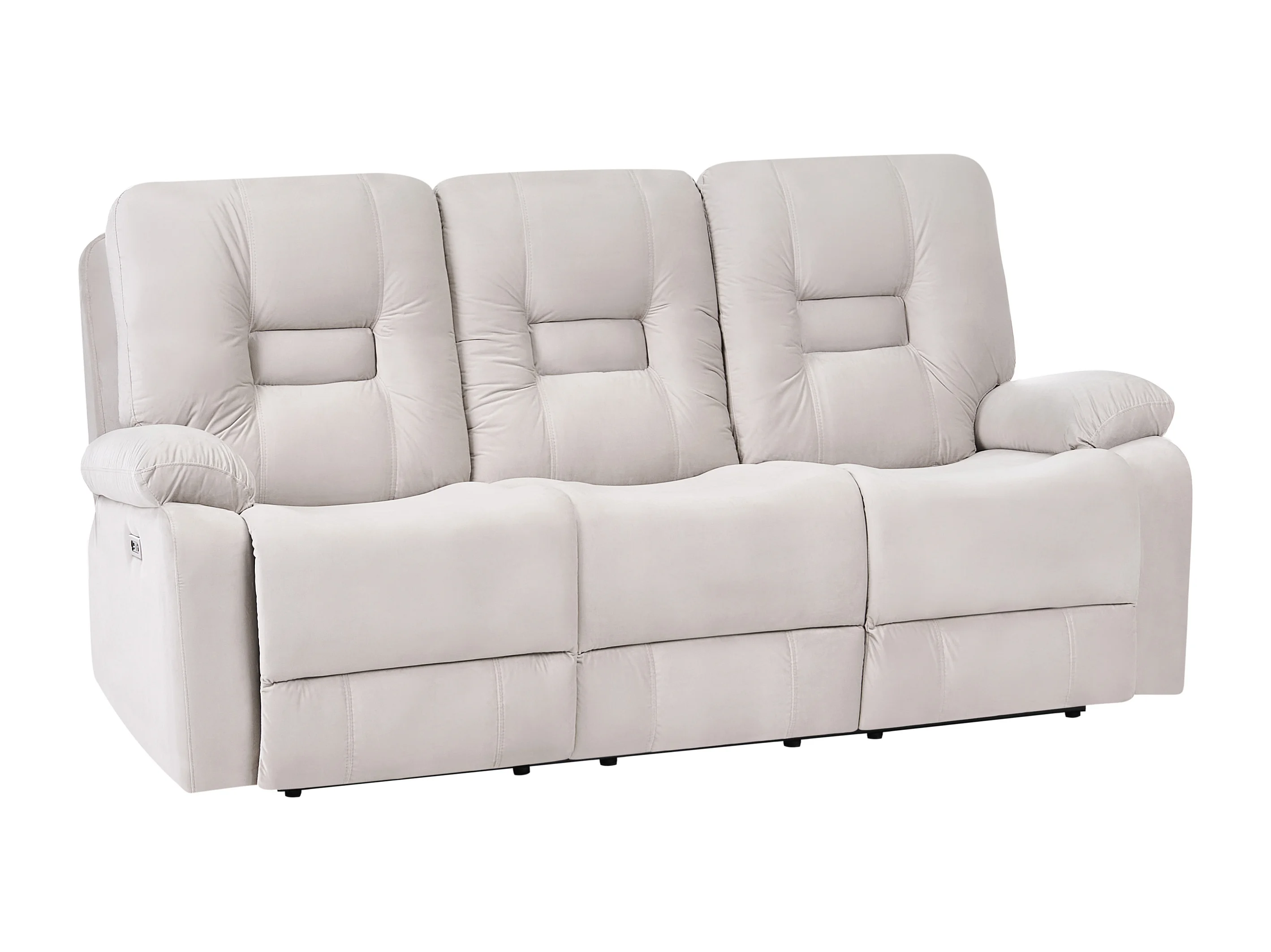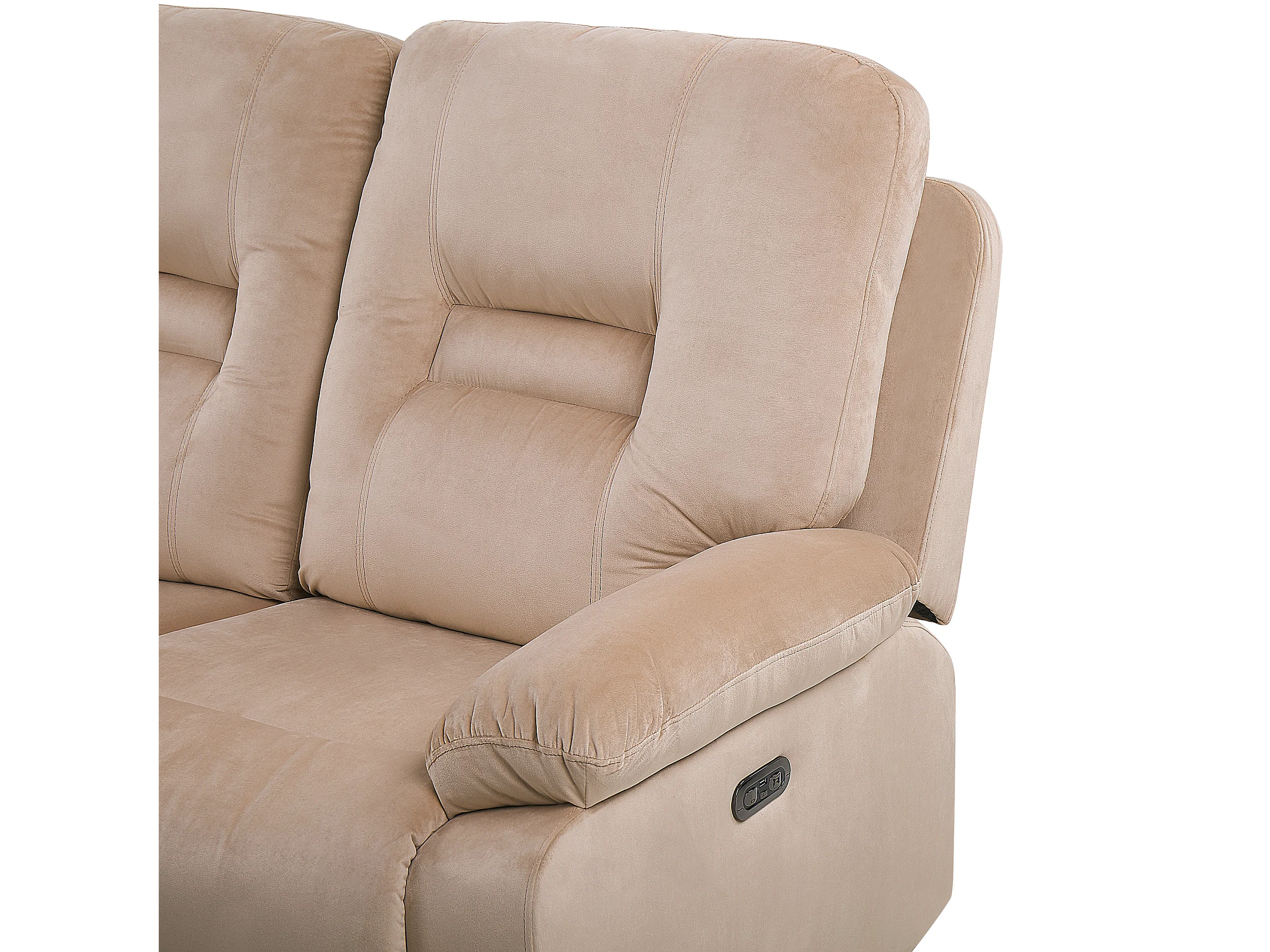 Sofá reclinable eléctrico BERGEN Terciopelo Arena con puerto USB 3 plazas
