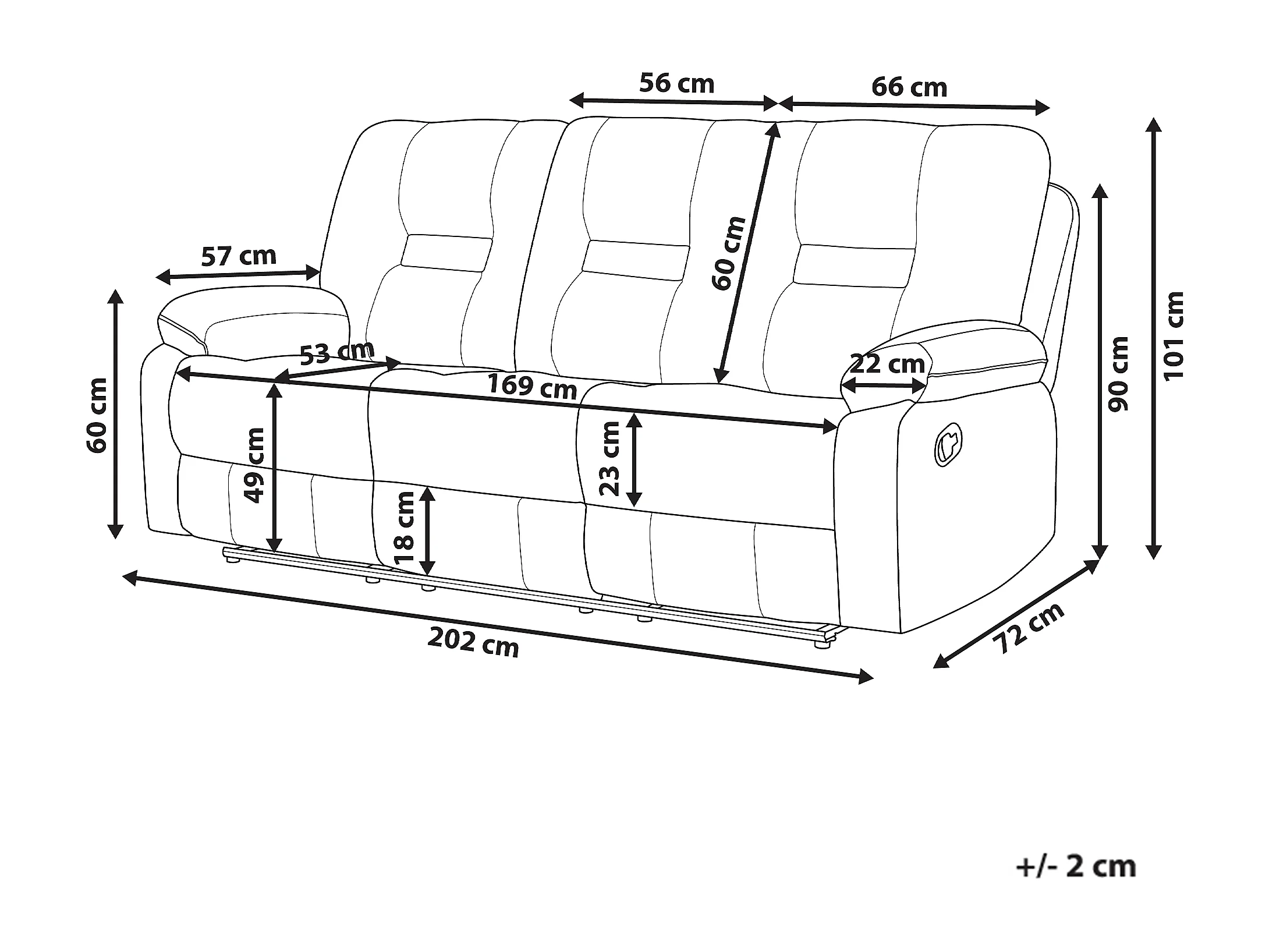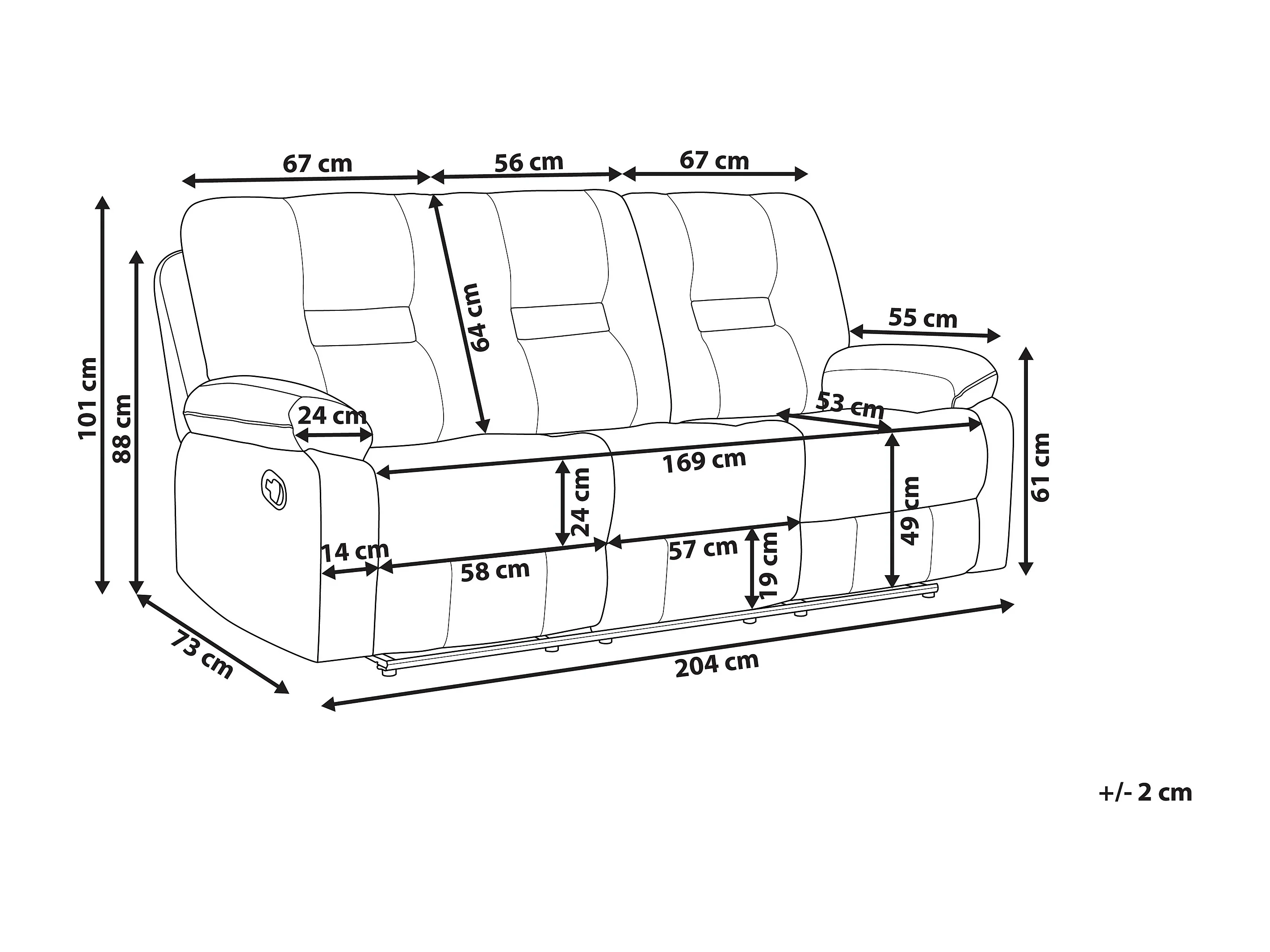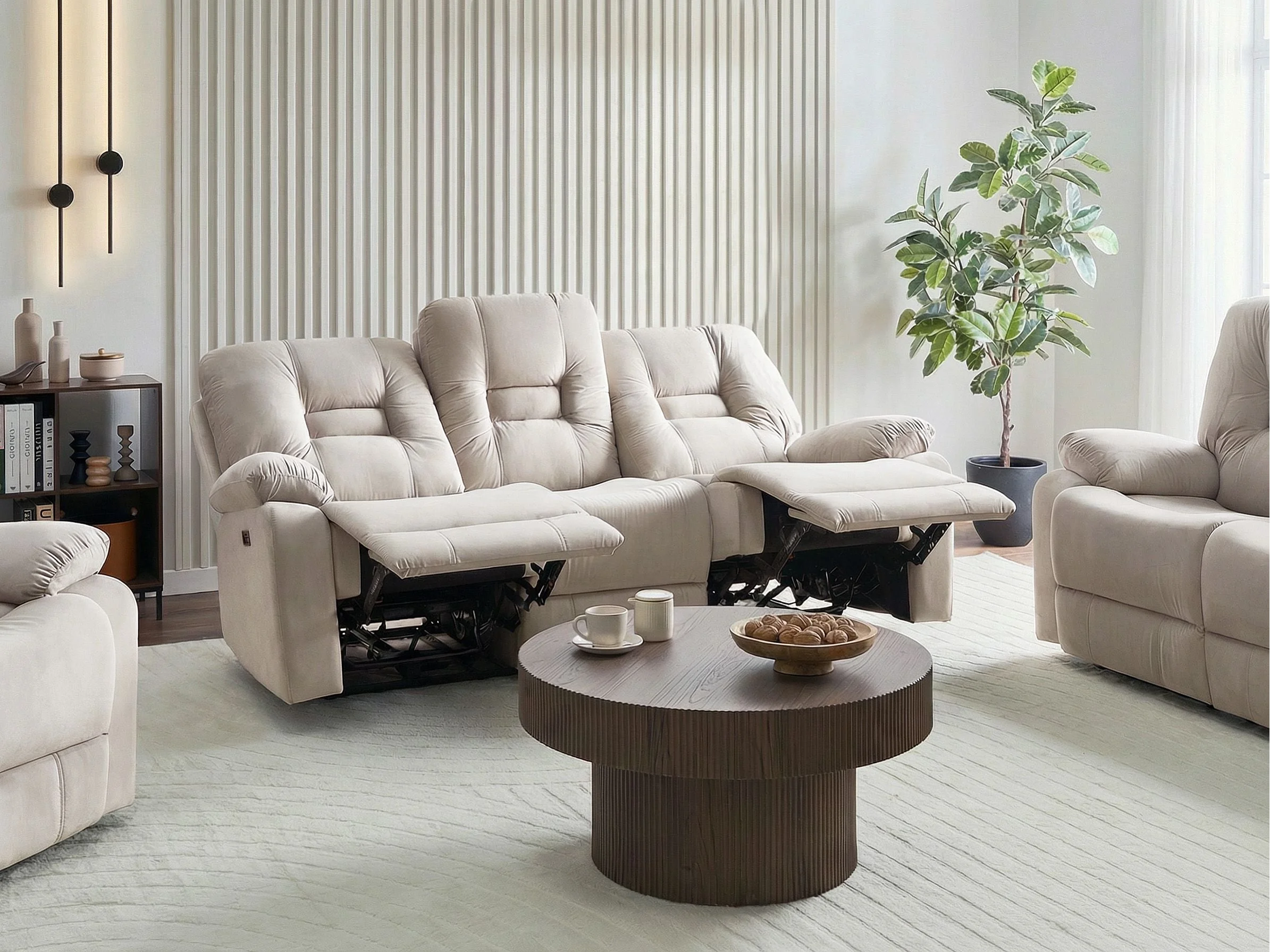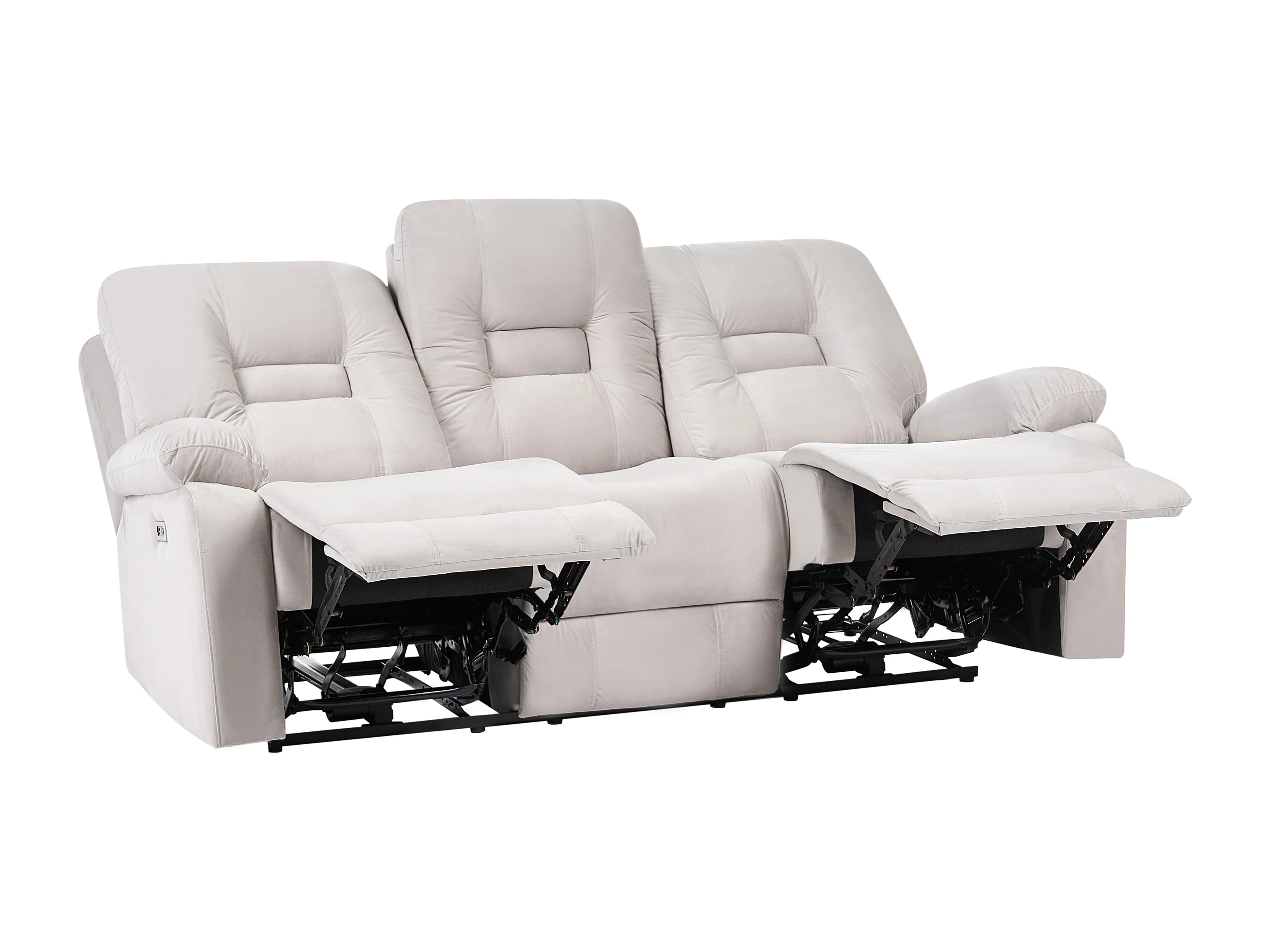 Sofá reclinable eléctrico BERGEN Terciopelo Arena con puerto USB 3 plazas