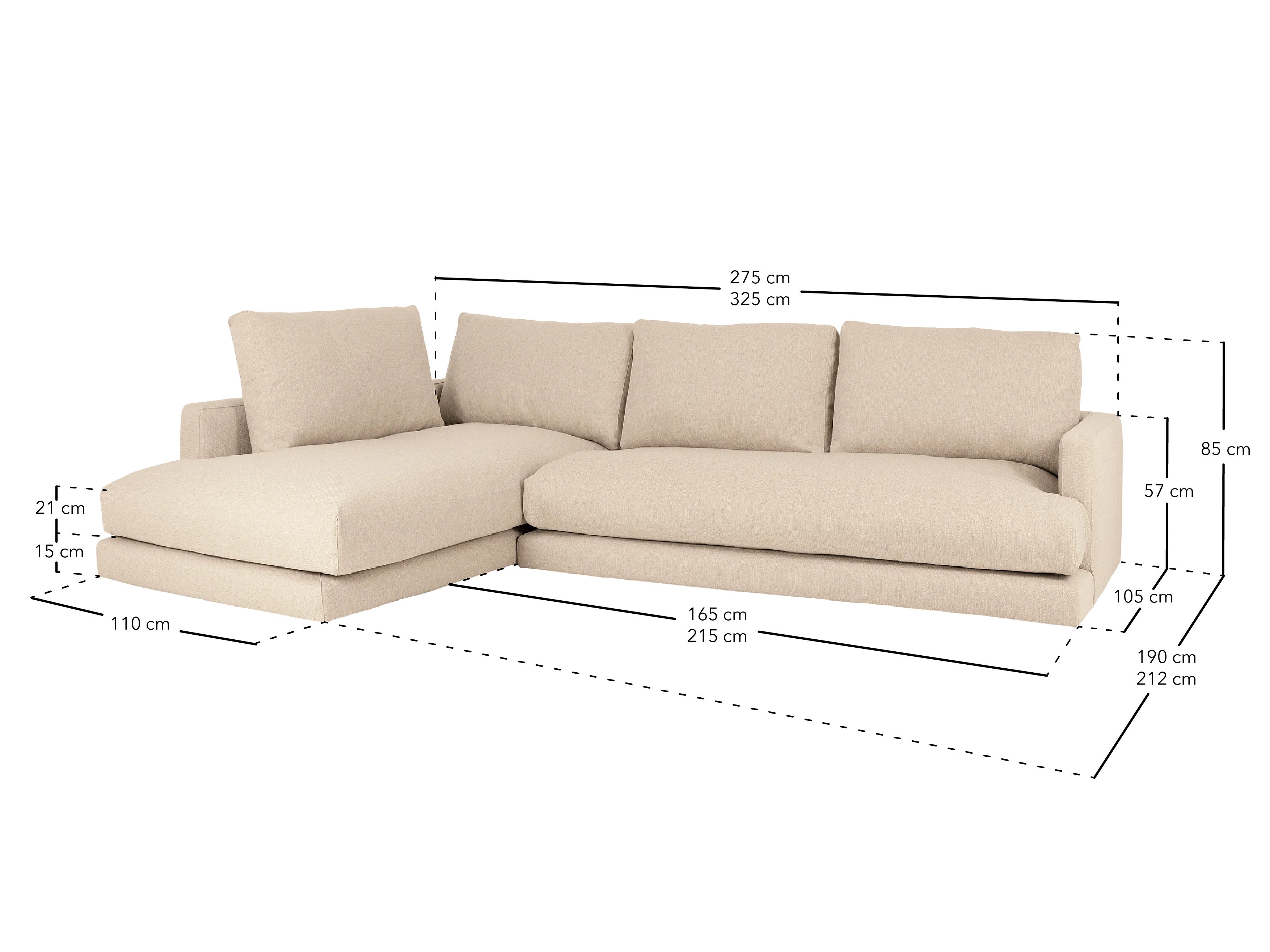 Sofá 4 plazas con chaise longue derecho tono beige 325x212cm - LAIA - DECOWOOD