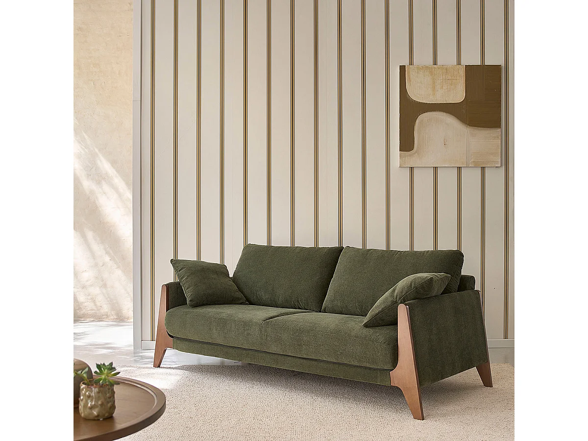 Sofá 4 plazas madera maciza terciopelo verde musgo