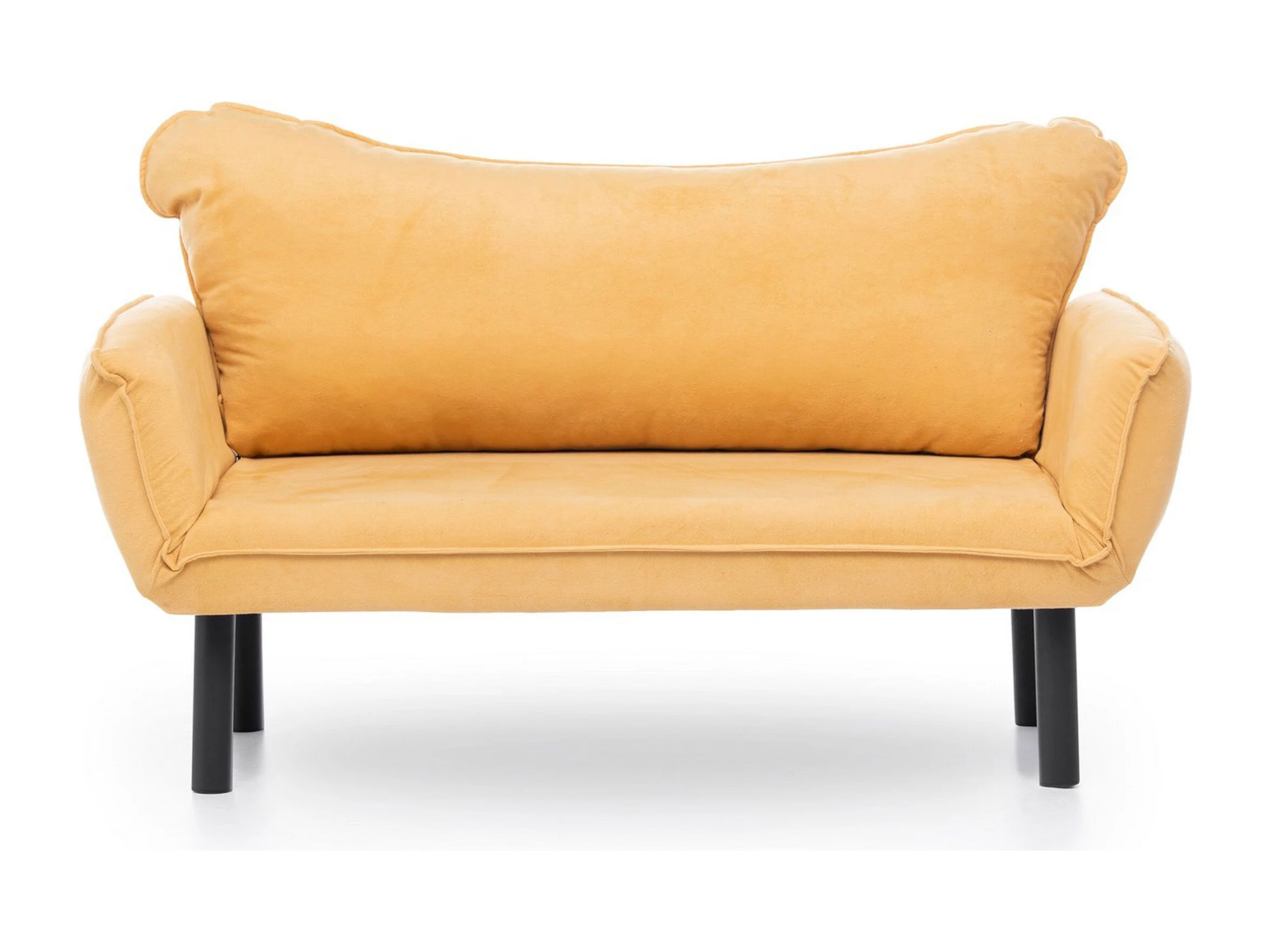 Sofá cama de 2 plazas con dos almohadas terciopelo amarillo