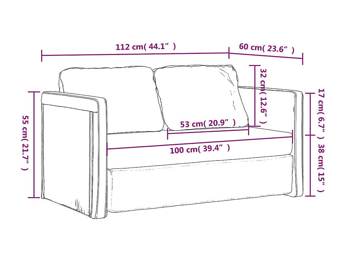 Sofá cama 2 en 1 gris 112x174x55 cm piel sintética