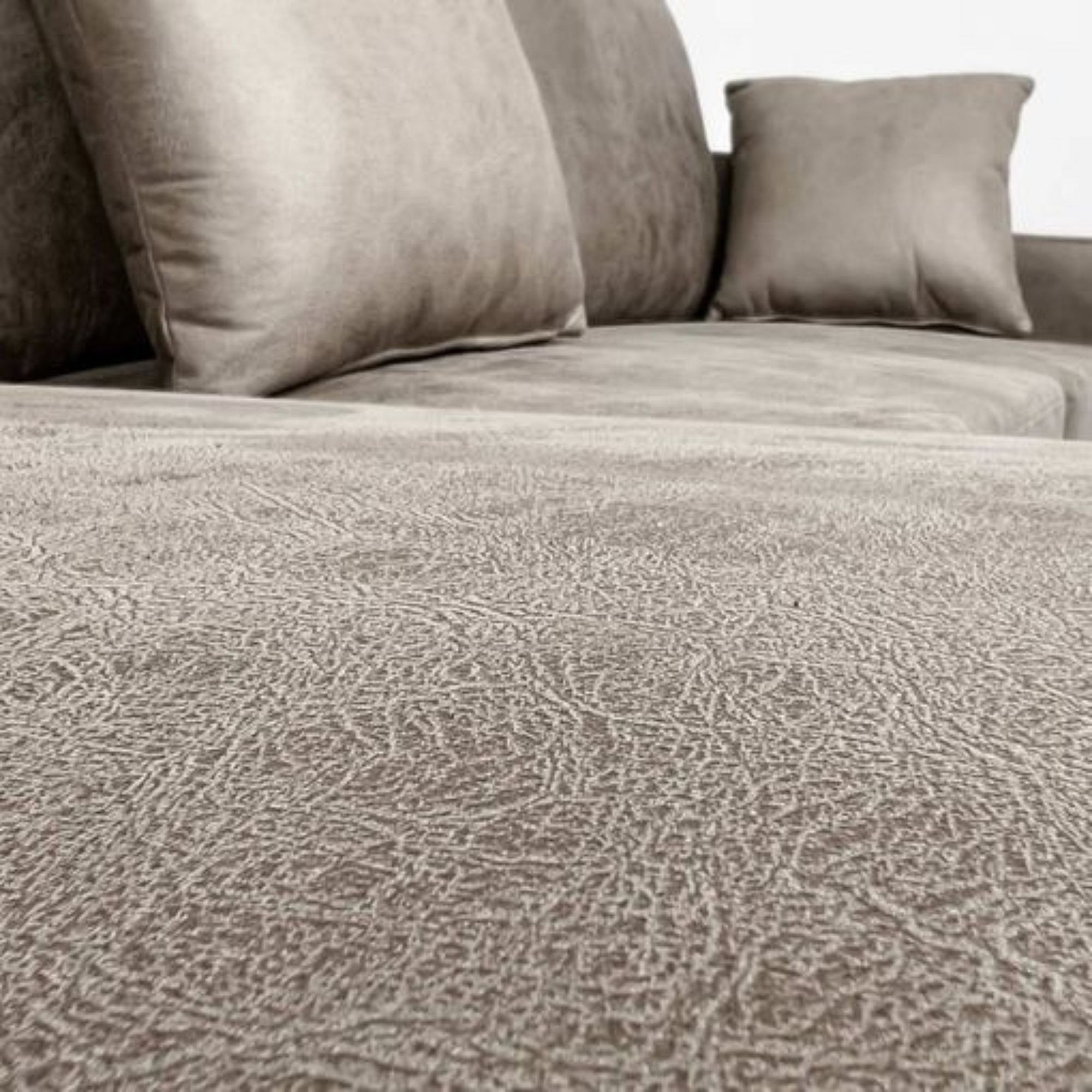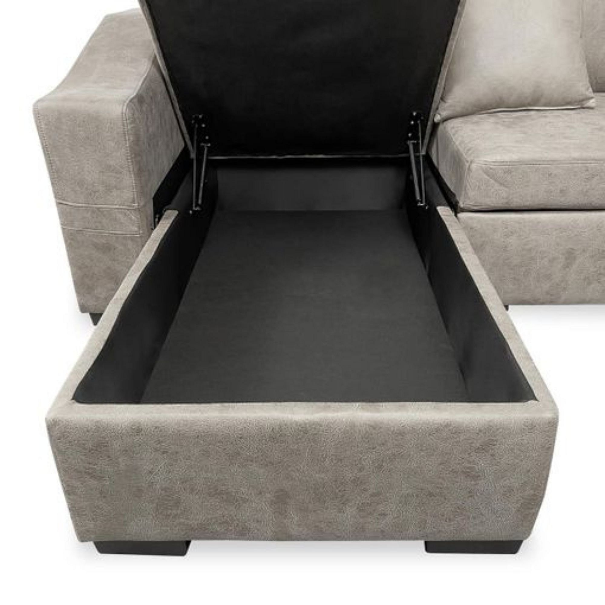 Sofá Cama 3 Plazas Reversible con Chaiselongue y Almacenaje, Tapizado en Tela Cemento, 253x95x156 cm