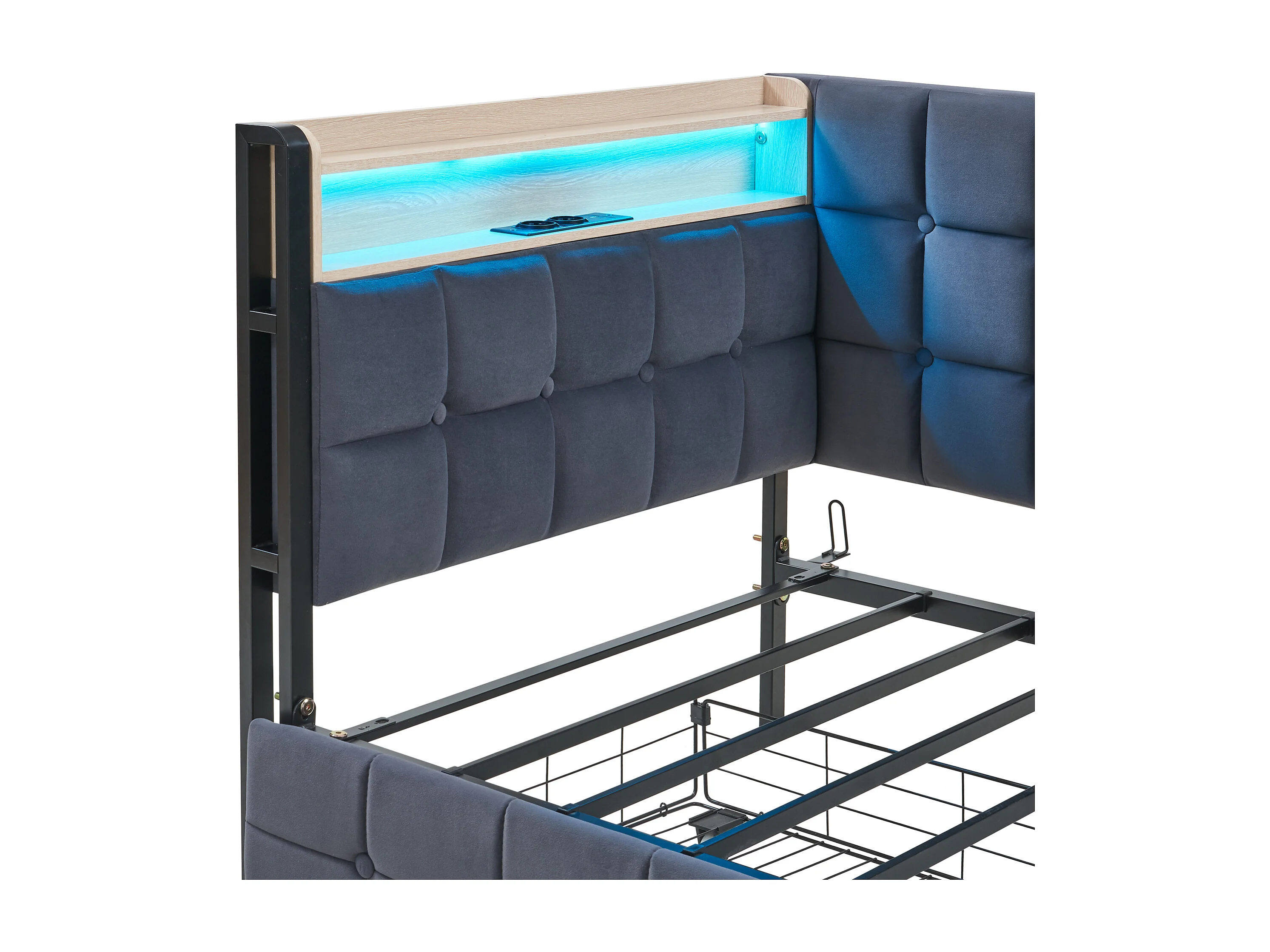 Sofá cama multifuncional con LED y espacio de almacenaje, franela, gris oscuro (213x103x98 cm)