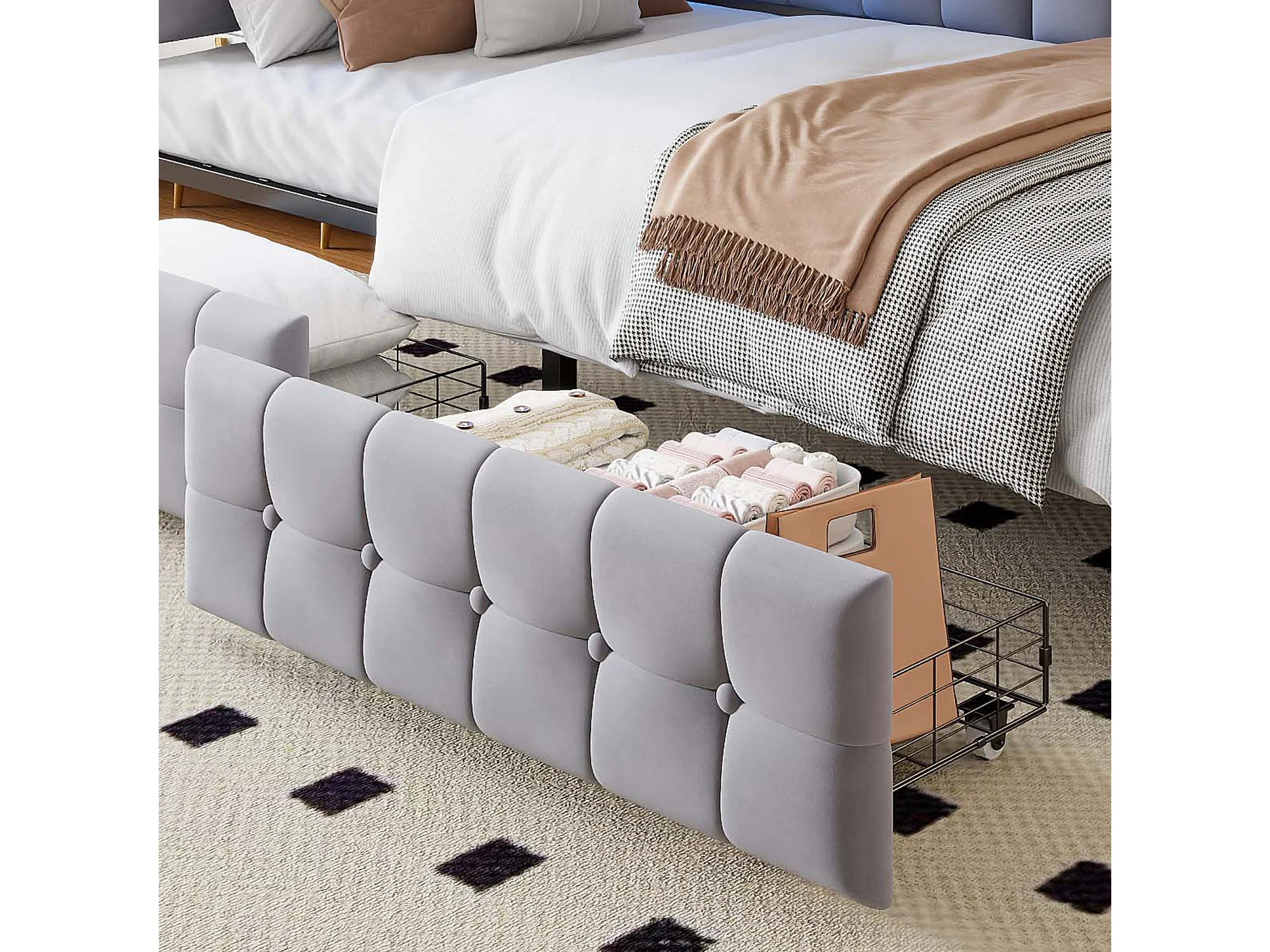 Sofá cama con cargador USB tipo C, estructura tapizada en lino gris, 2 cajones de almacenaje, 90x200cm (215x99x86,5cm)