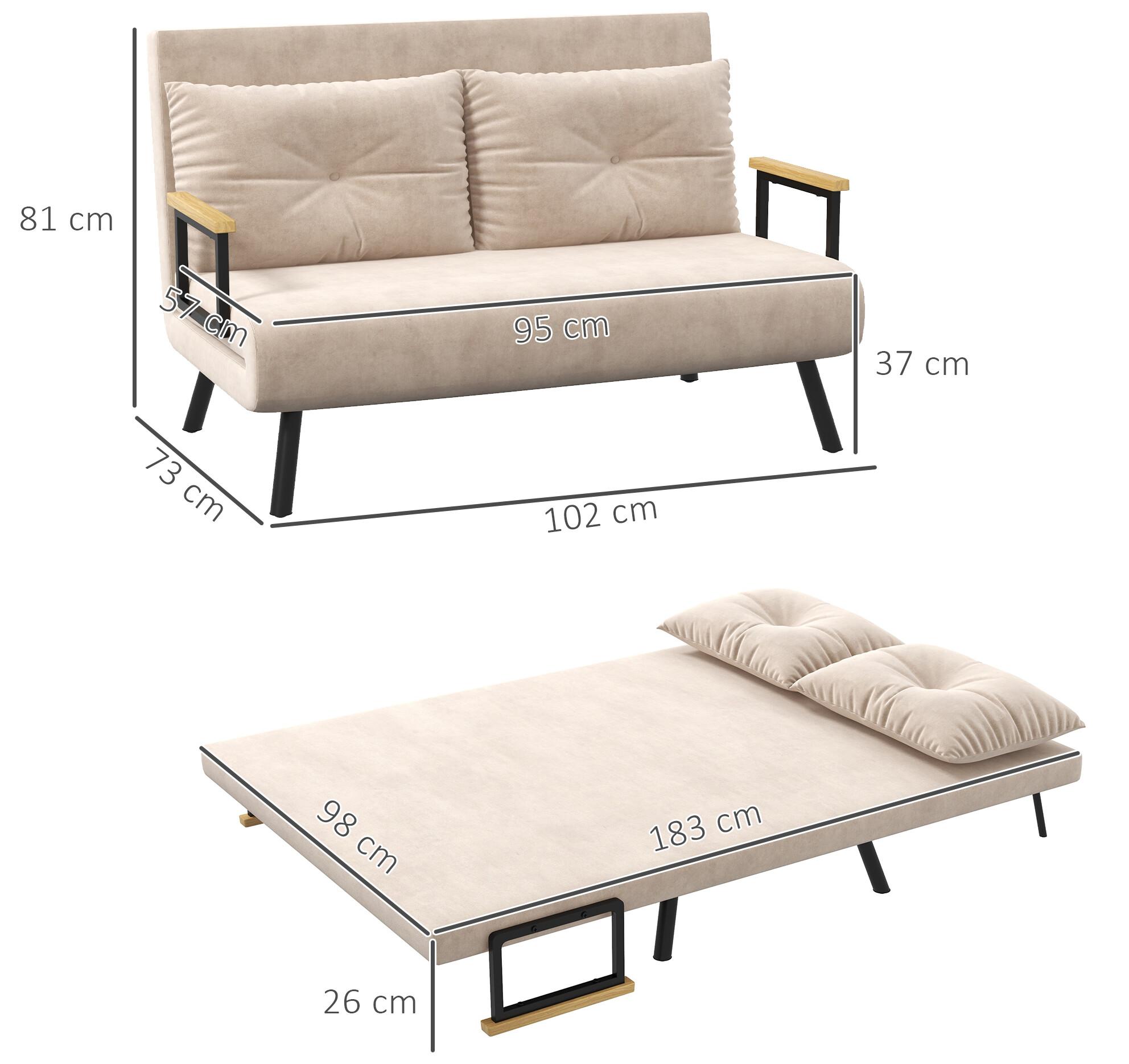 Transforma fácilmente este sofá elegante en una cómoda cama para dormir. Fabricado con una resistente estructura de acero y acolchado y tapizado en una agradable tela con tacto de terciopelo, este sofá de HOMCOM es ideal para cualquier entorno. Además, cuenta con un respaldo reclinable en hasta 5 posiciones con un ángulo máximo de hasta 180°, para que encuentres la posición perfecta.