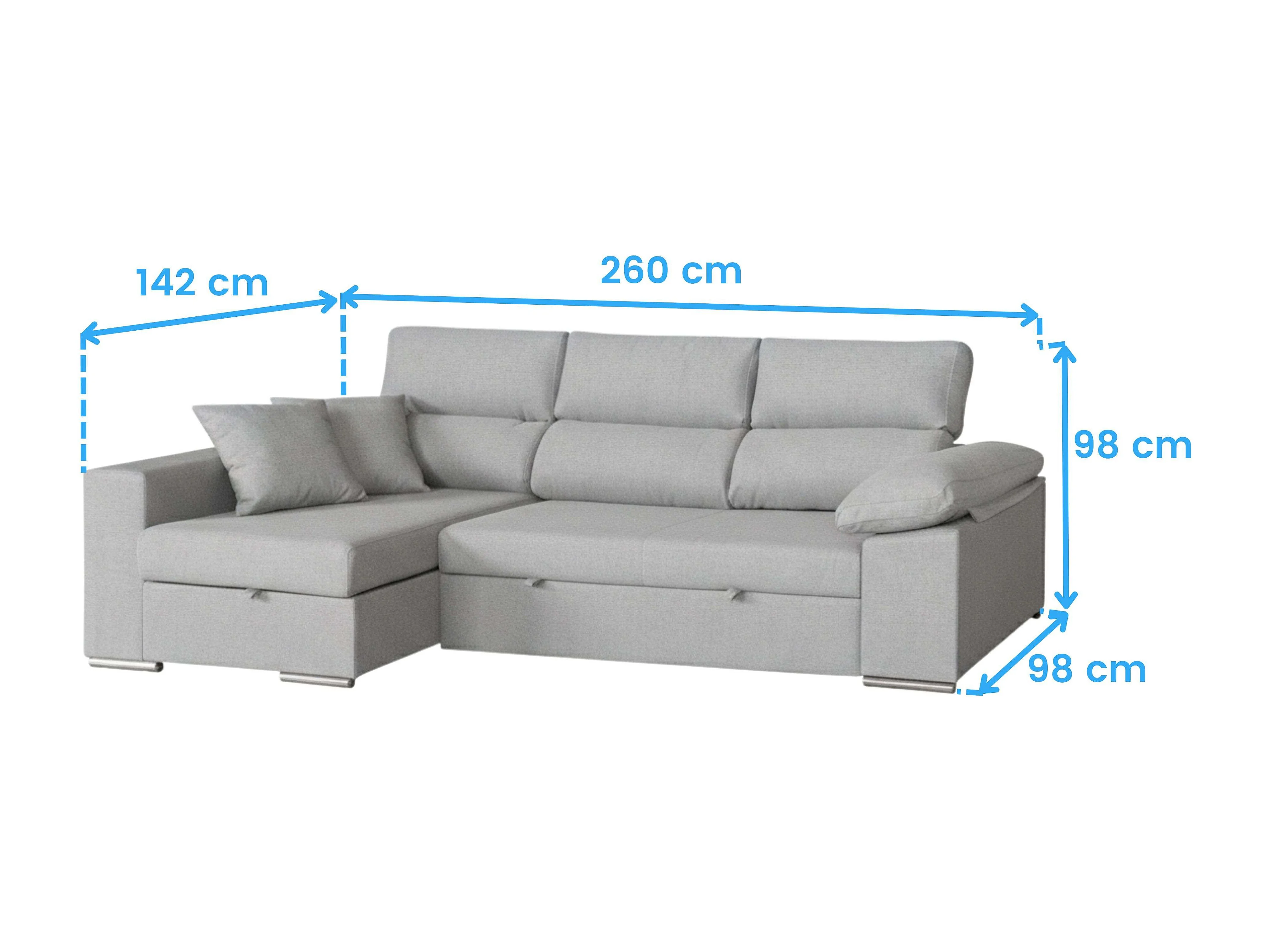 Sofá Cama chaise longue Izquierdo Milano salón 3 plazas gris claro 260x98x98 cm