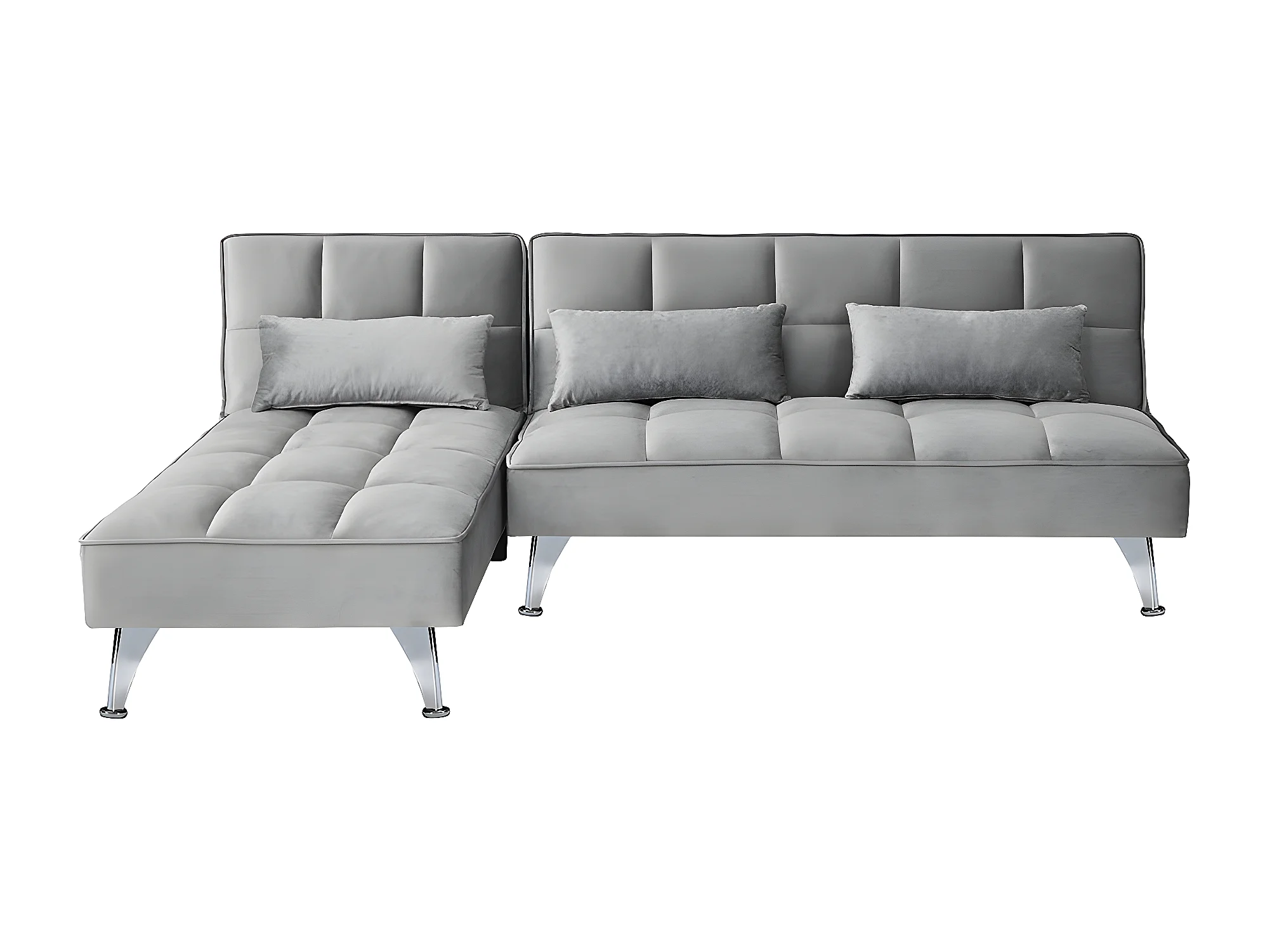 Sofá Cama 4 Plazas con Chaise Lounge en Terciopelo Gris Claro