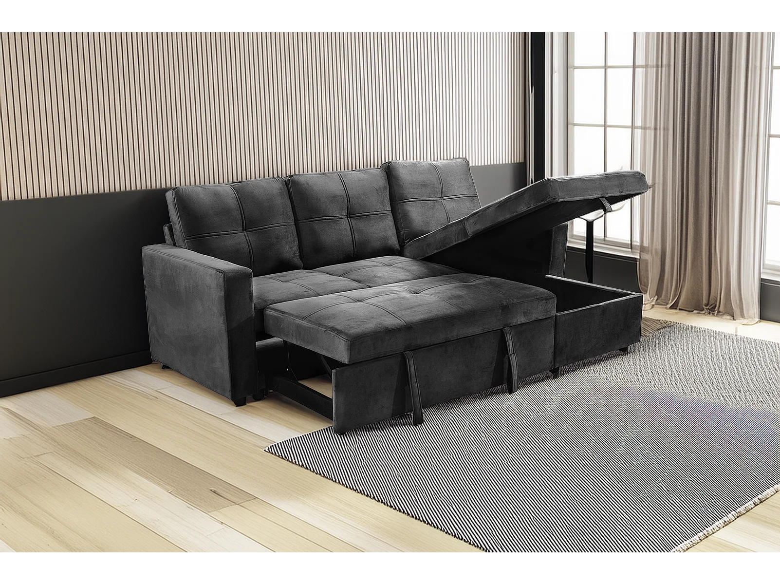 Sofa Cama Chaise Longue Pau 215cm Negro